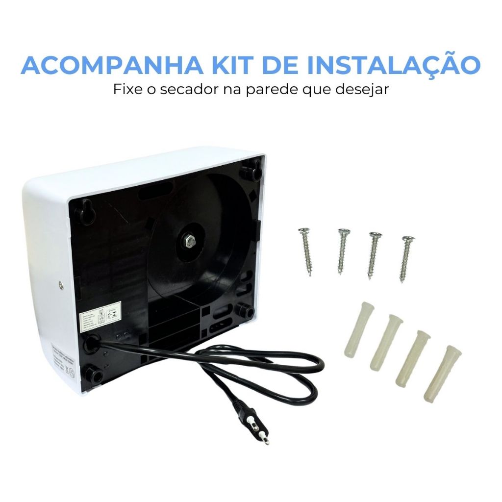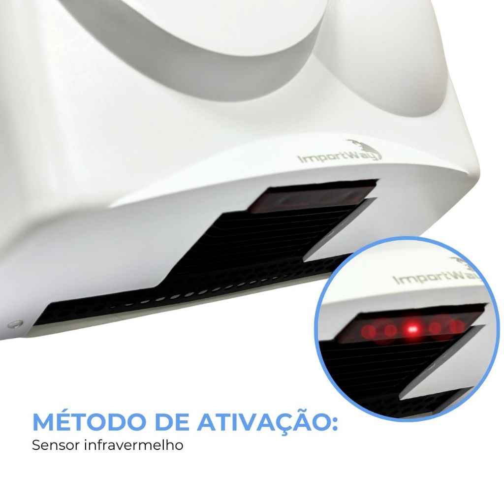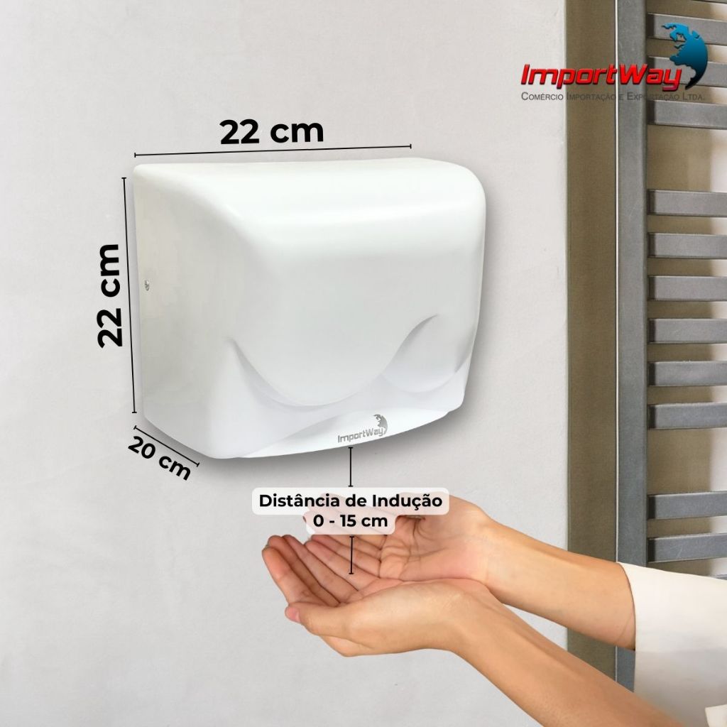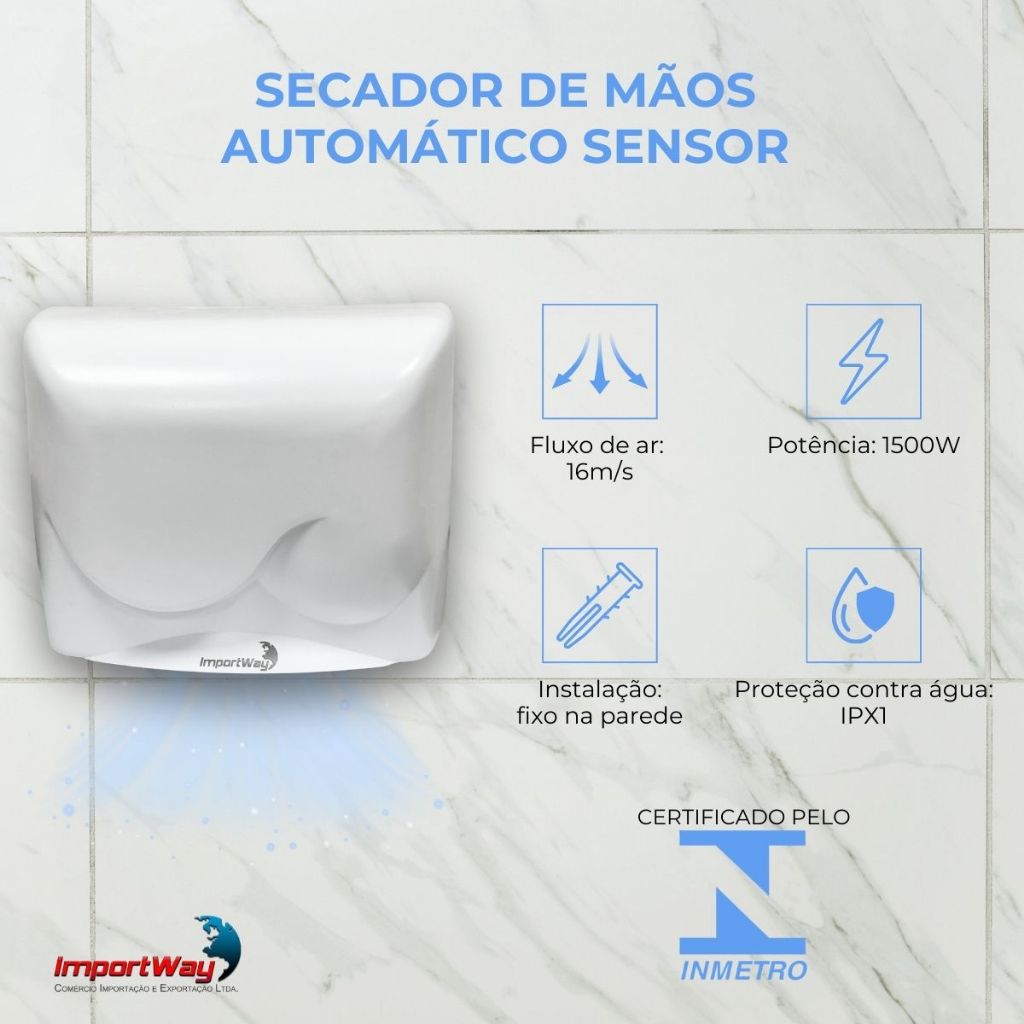 Secador de Mãos Automático com Sensor, 1500W, Velocidade do Ar 16m/s