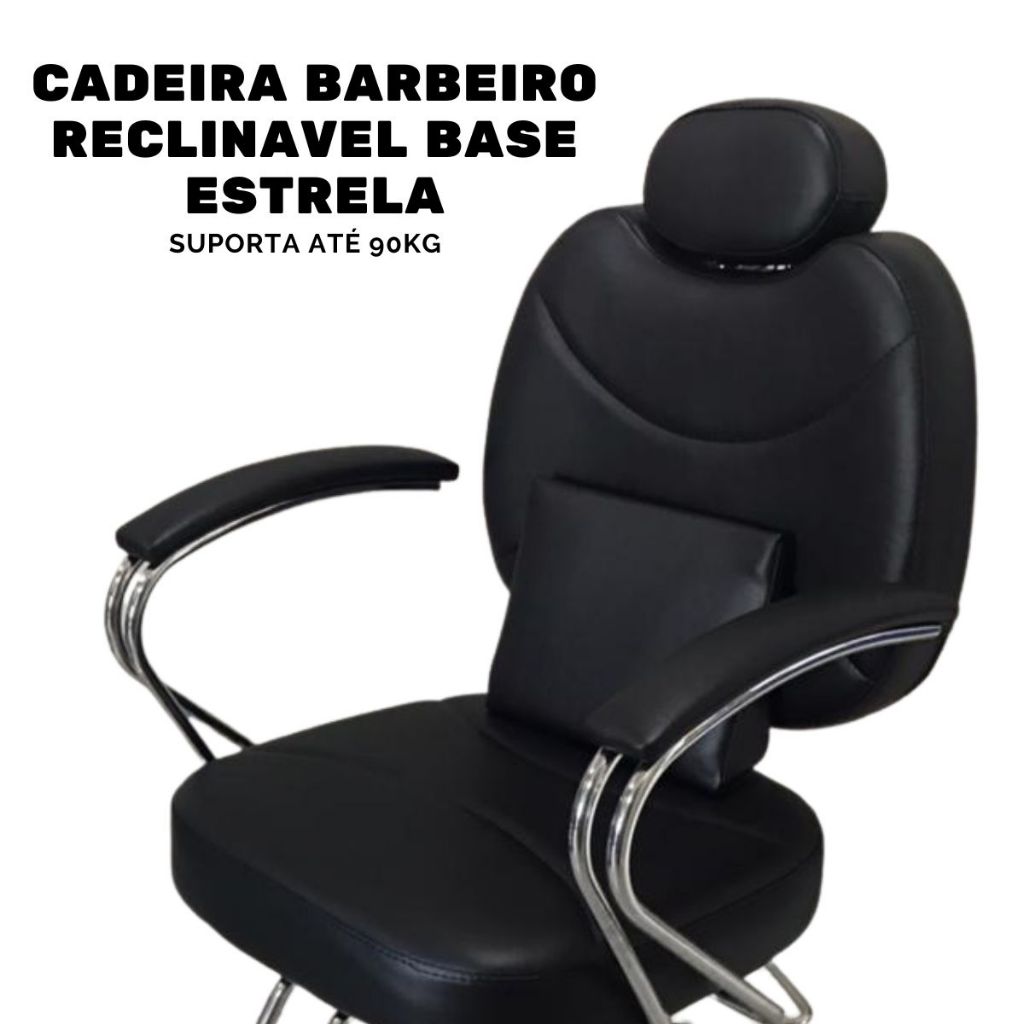 Cadeira de Barbeiro Reclinável Preta Base Estrela com Ajuste Hidráulico, Encosto Móvel e Conforto Profissional Premium