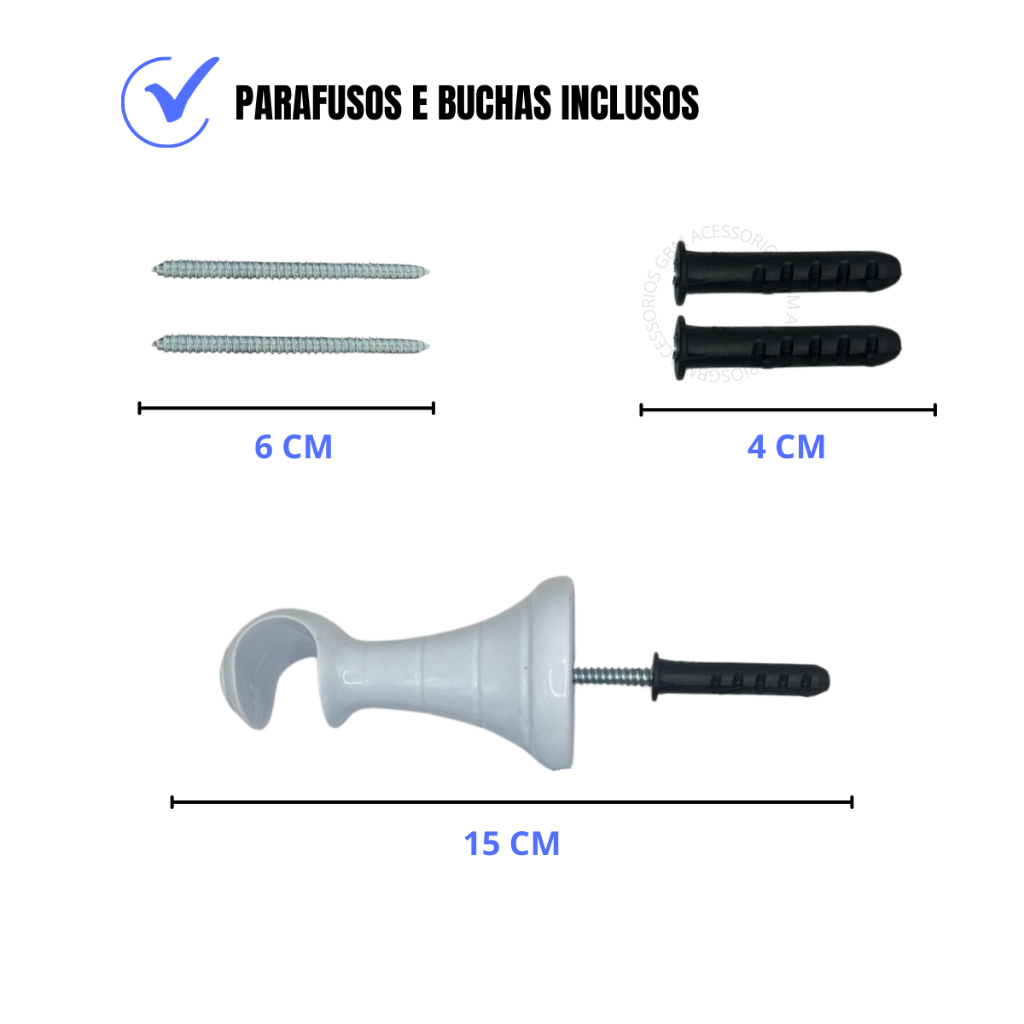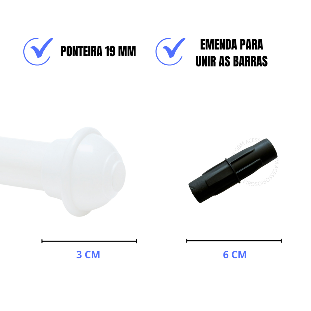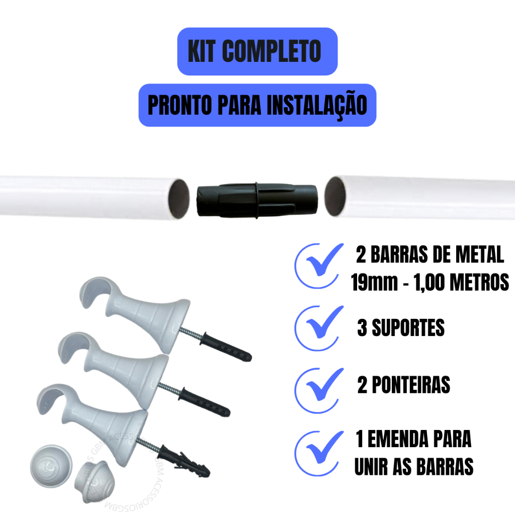 Kit Varão Cortina 2,00 Metros 19mm Varias Cores Simples
