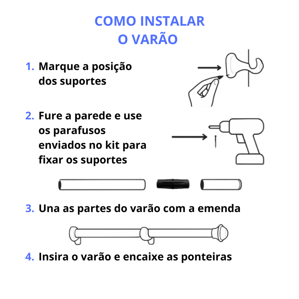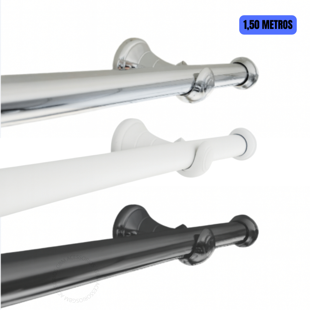 Kit Varão Cortina 1,50 Metros 28mm Varias Cores Simples