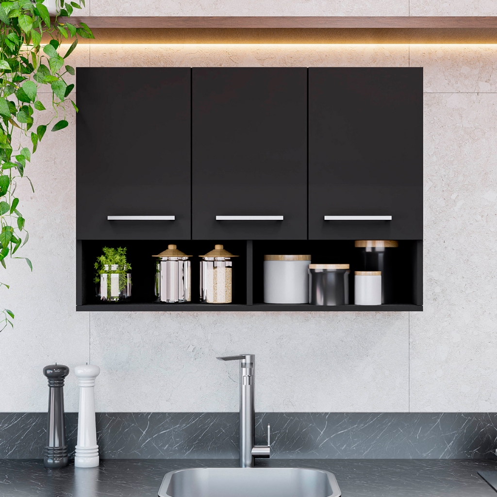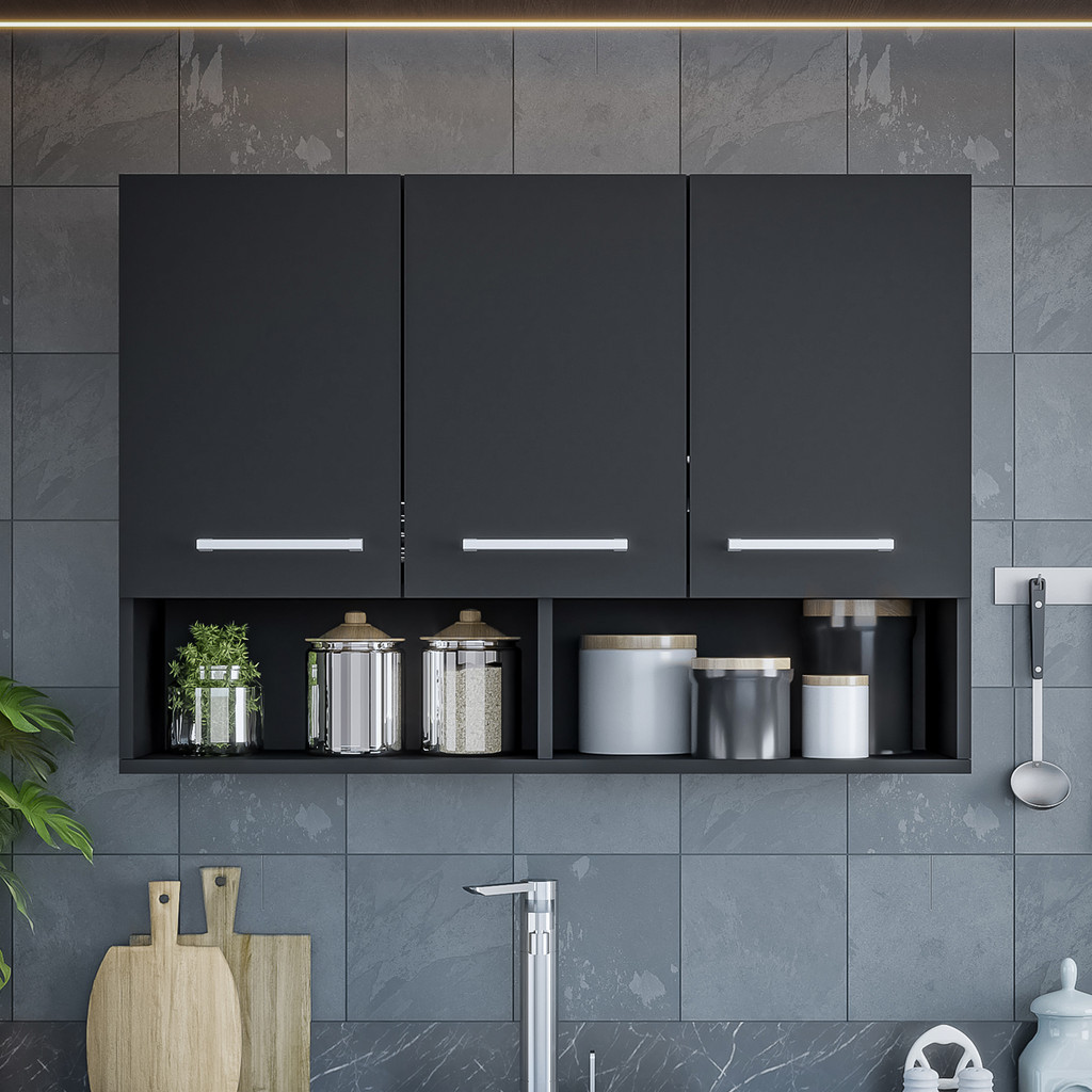 Armário 3 Portas Organizador Multiuso Aéreo Facil Montagem Cozinha Lavanderia Móveis Bonatto
