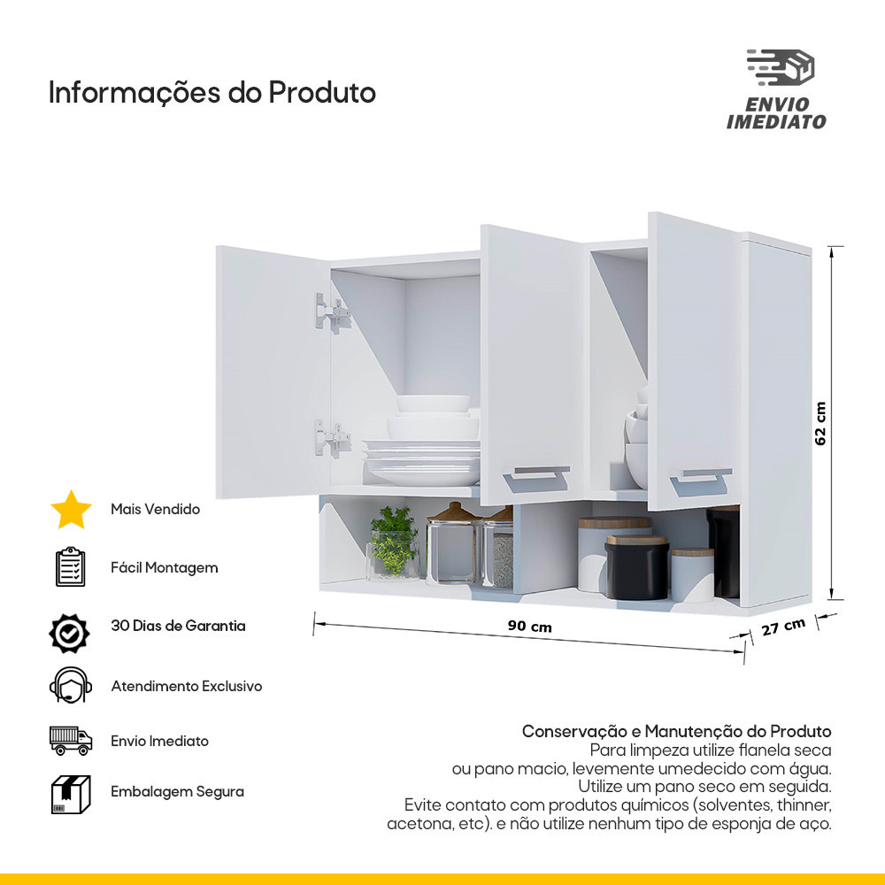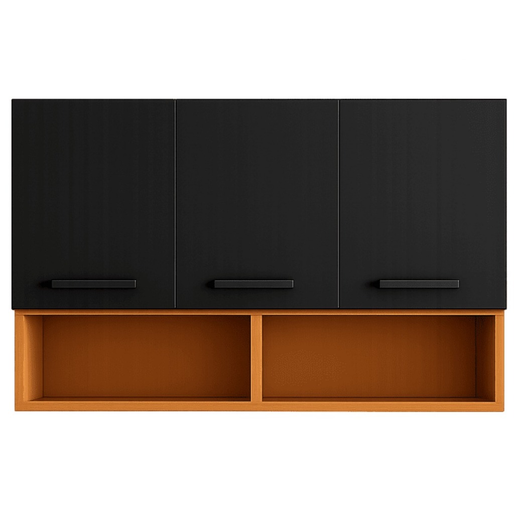 Armário Aéreo 3 Portas Cozinha Quarto Garagem Escritório com Nicho Multiuso Organizador