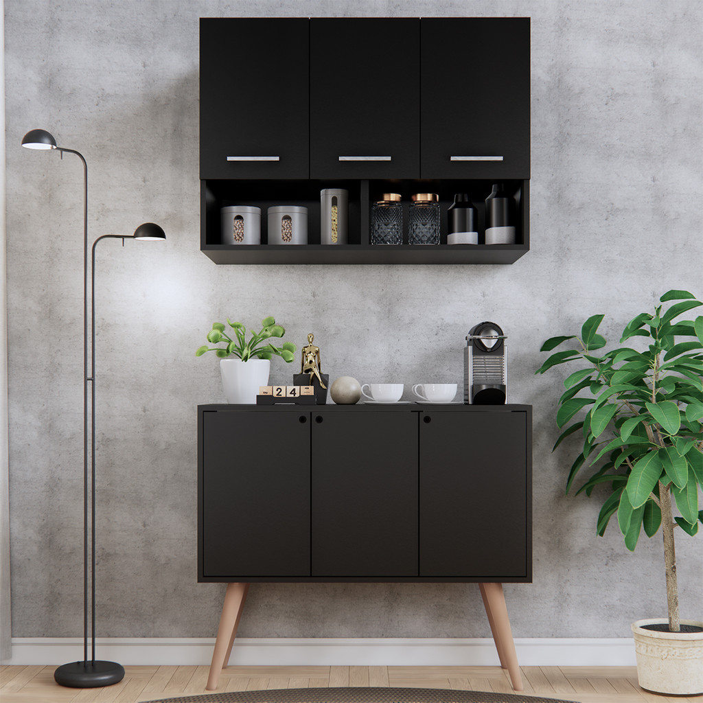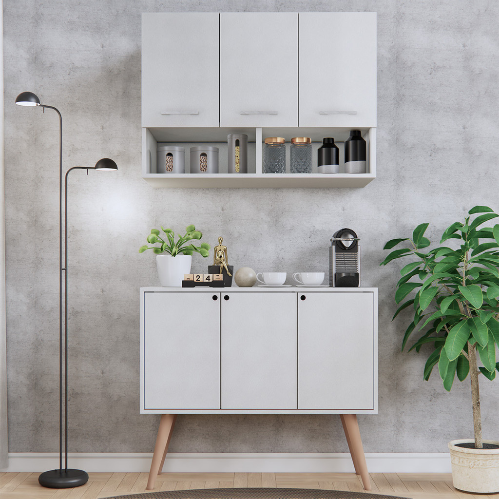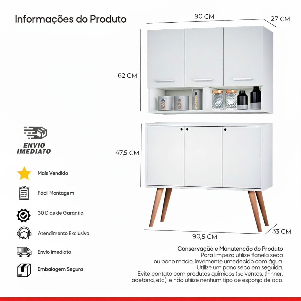 Conjunto Armário Aéreo + Balcão 3 portas Cozinha Compacta Móveis Bonatto