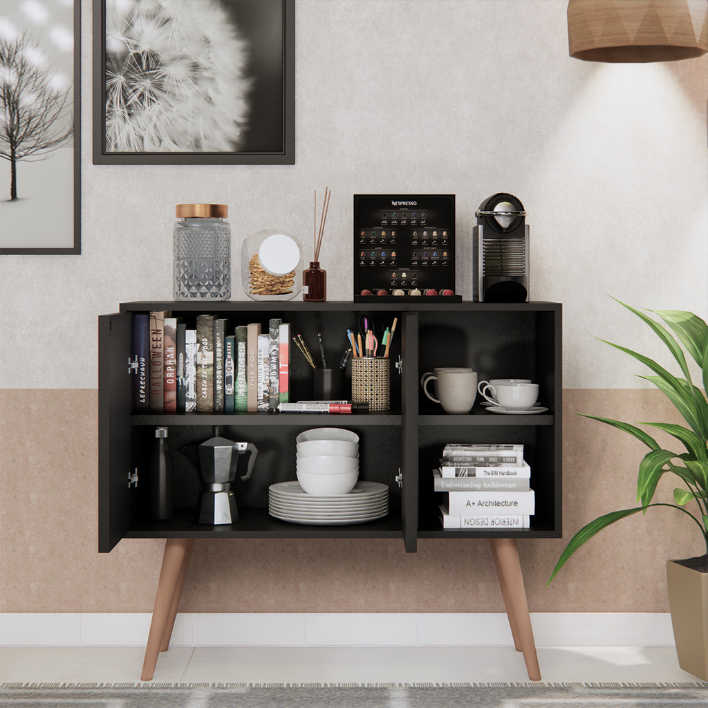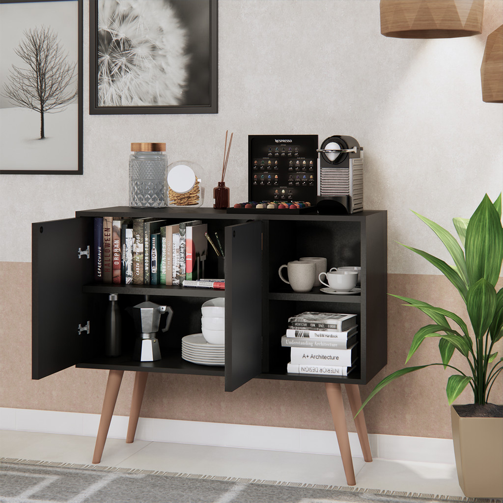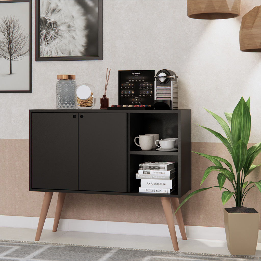 Buffet Aparador Rack Sala Cozinha 2 Portas Pés Retrô Madeira Móveis Bonatto