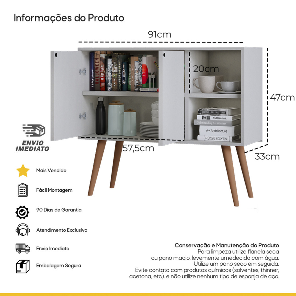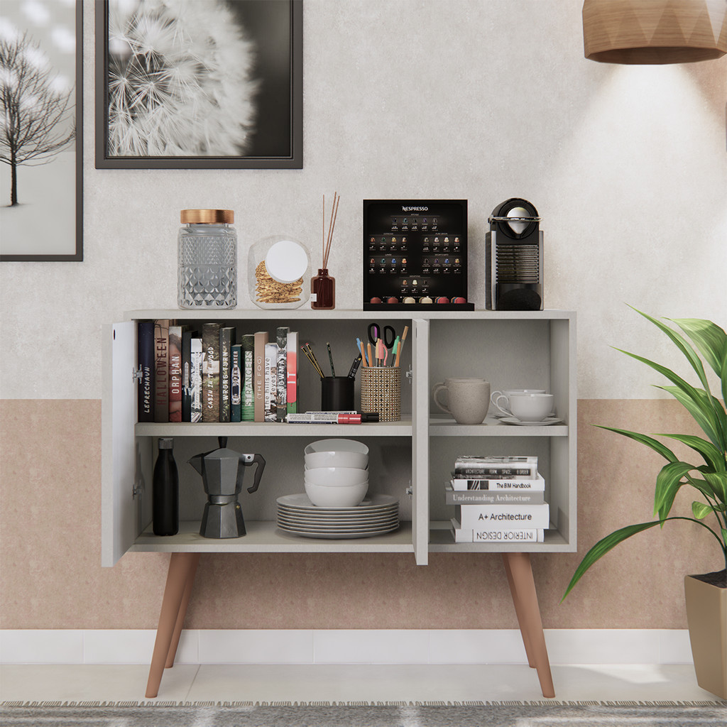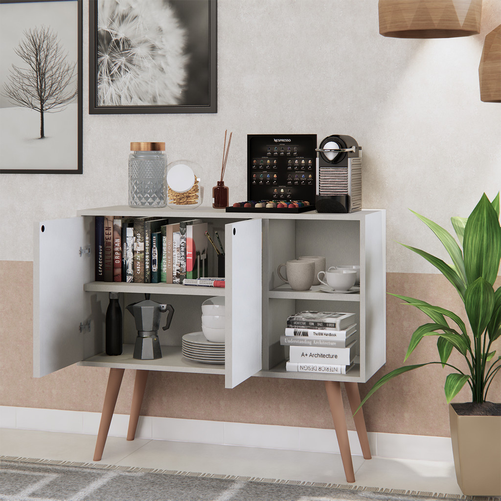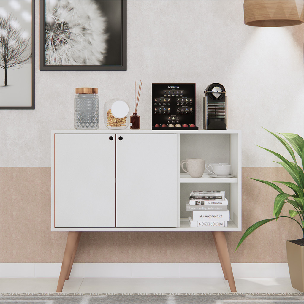 Buffet Aparador Rack Sala Cozinha 2 Portas Pés Retrô Madeira Móveis Bonatto