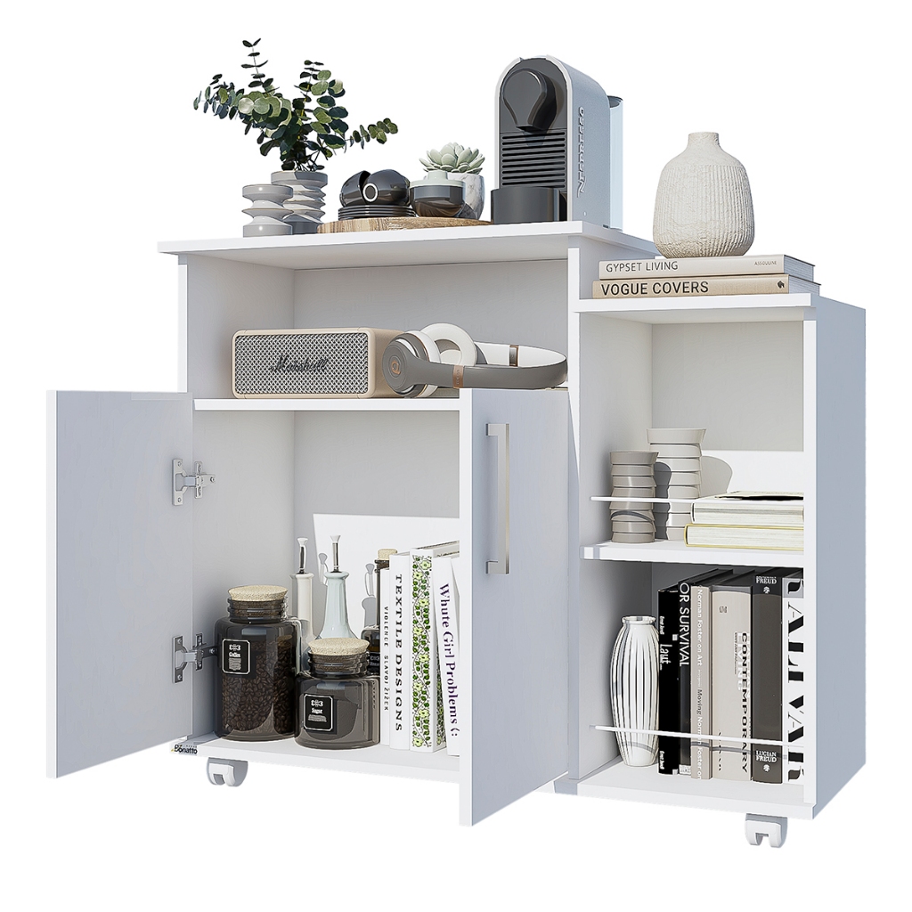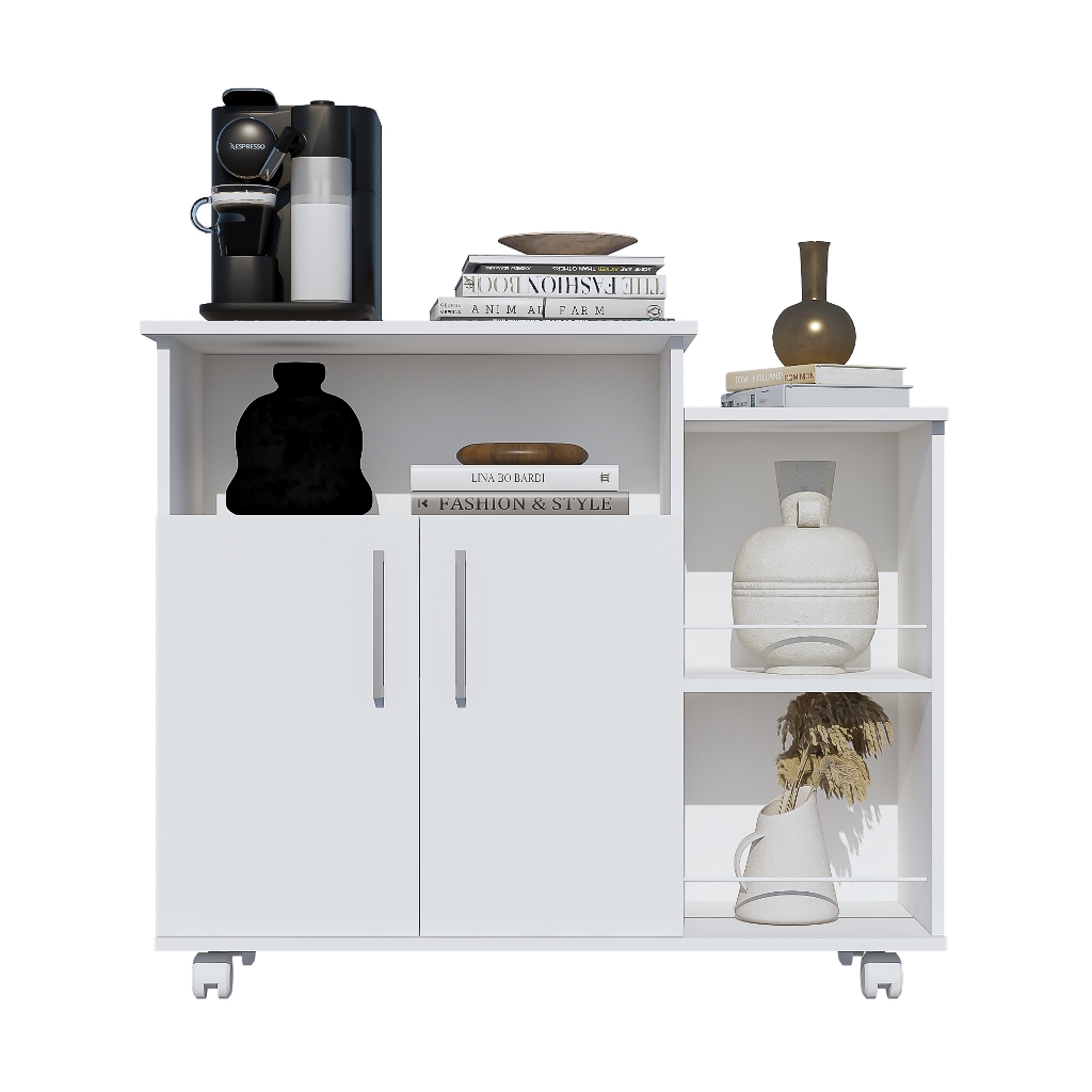 Armário Para Café Escritório Cozinha Organizador 2 Portas e Prateleiras Multiuso Com Rodinhas