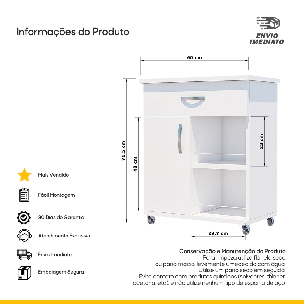 Buffet Cozinha Compacto Multiuso 1 Gaveta p/ Microondas ou Forno Elétrico Móveis Bonatto