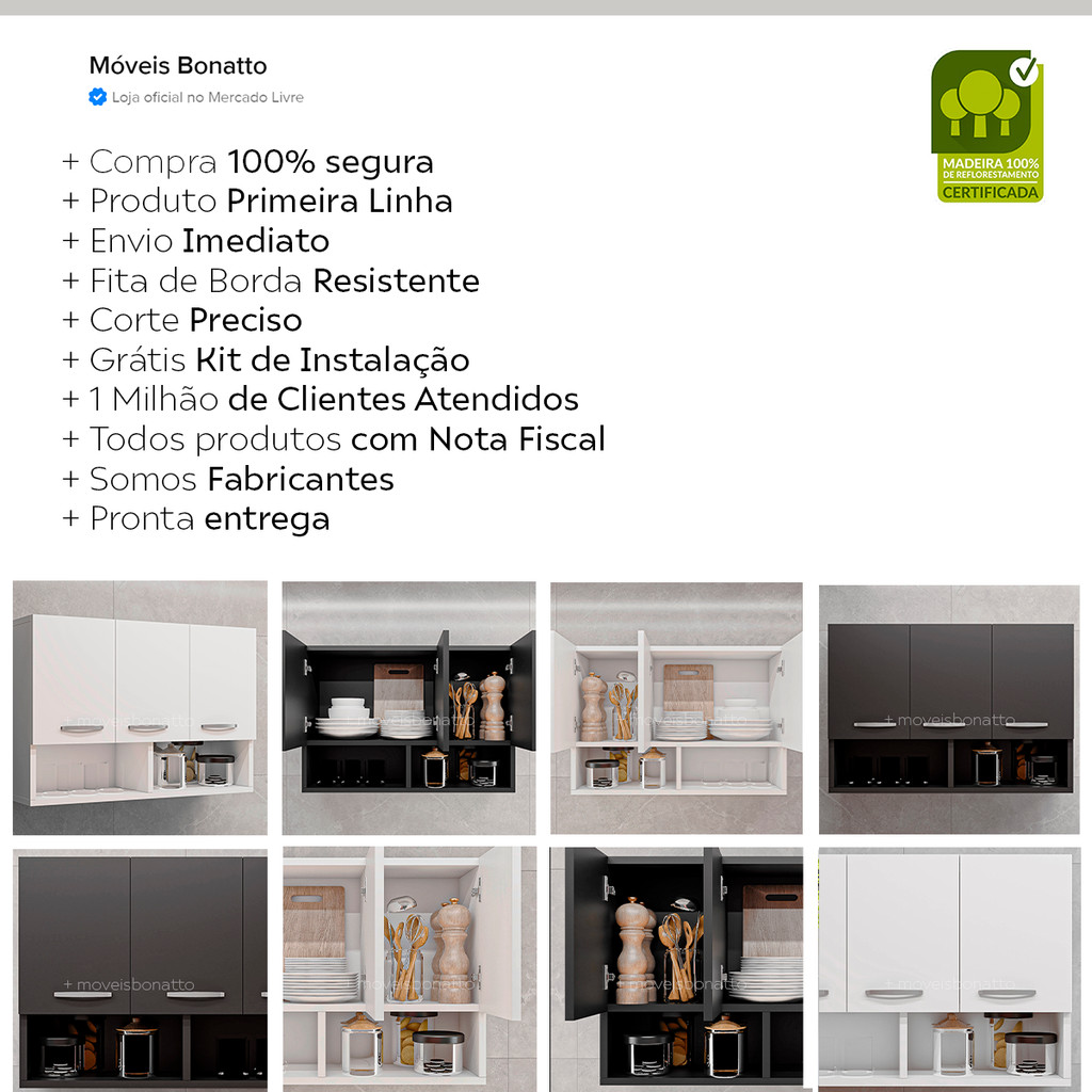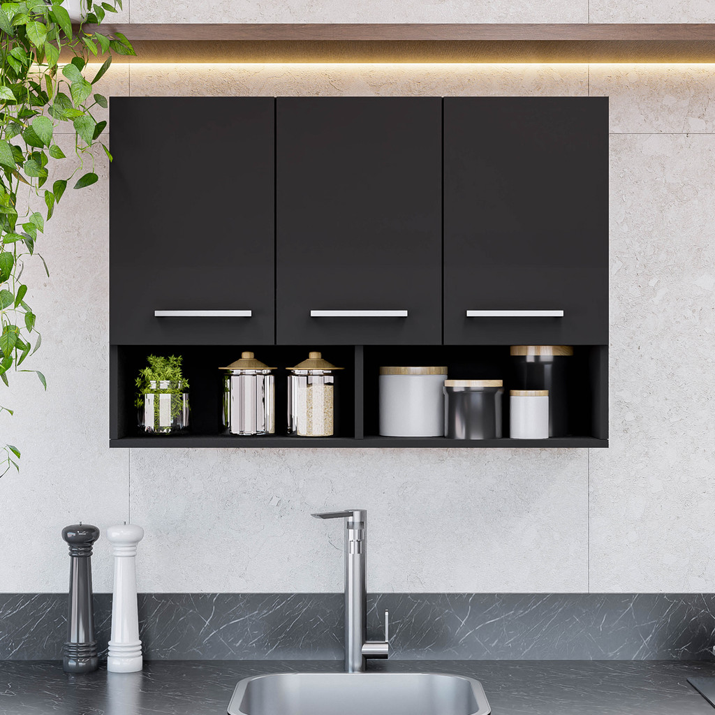 Conjunto Com 2 Armários 3 Portas P/ Cozinha De Parede Aéreo Compacto Modular Conjunto Compacto