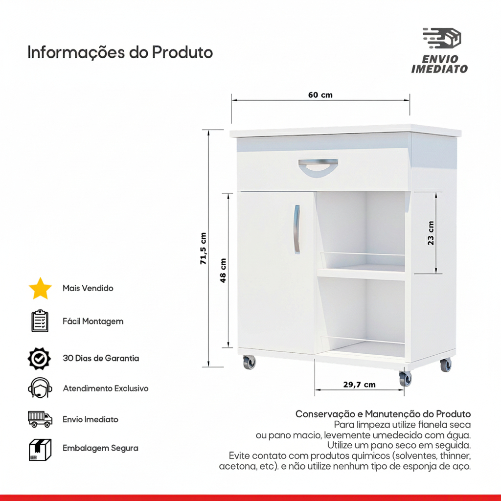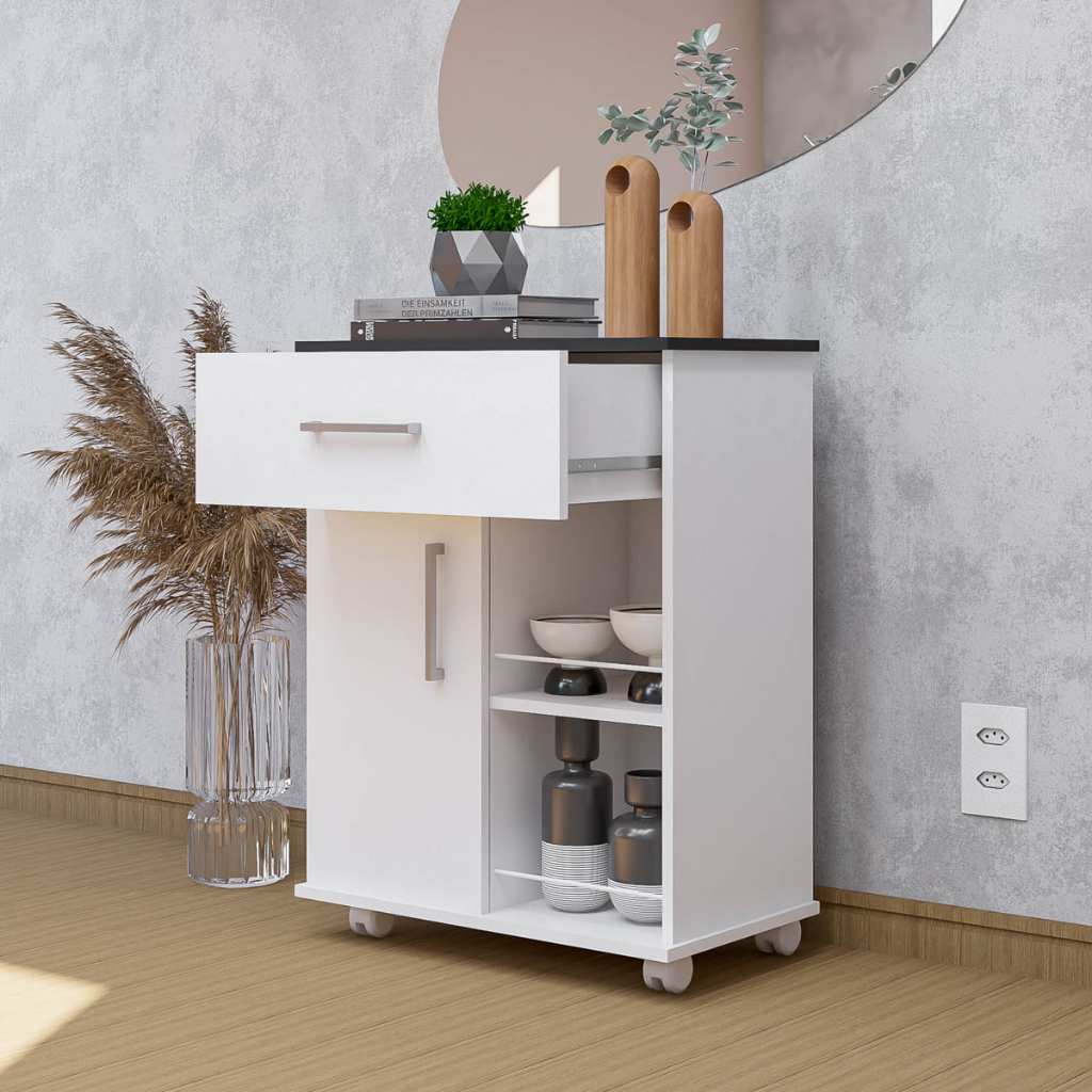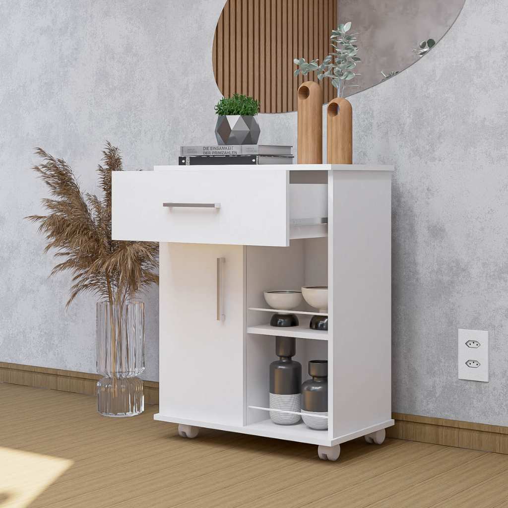 Suporte Microondas Cozinha Armário de Chão com Rodinhas e Gaveta Móveis Bonatto