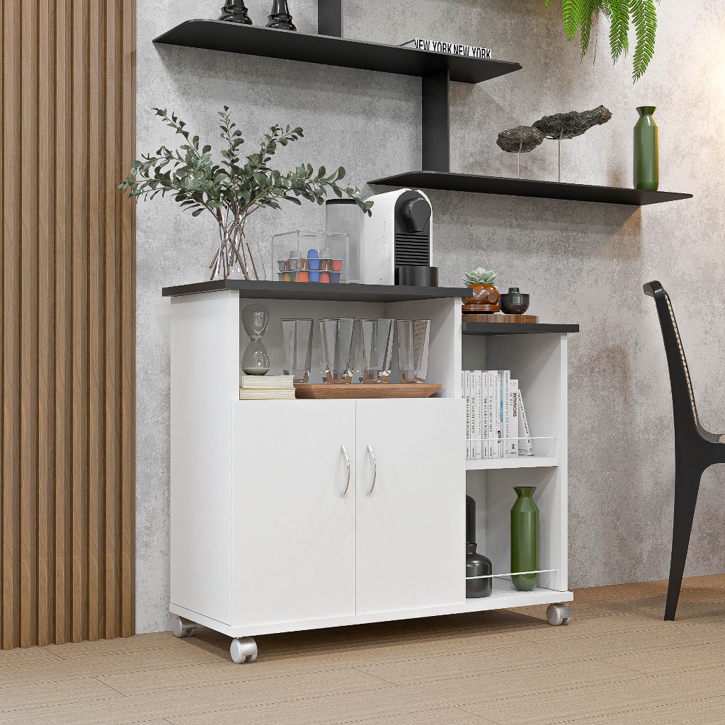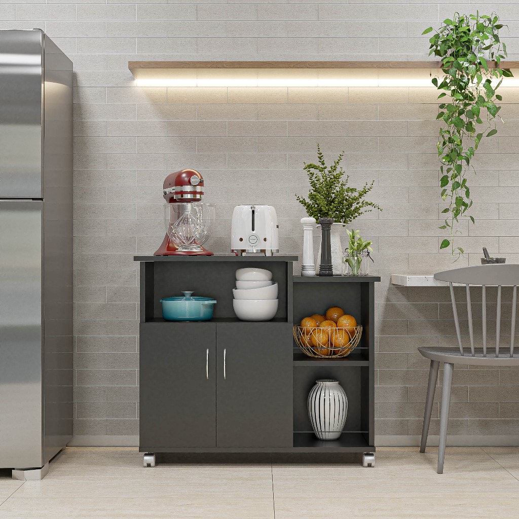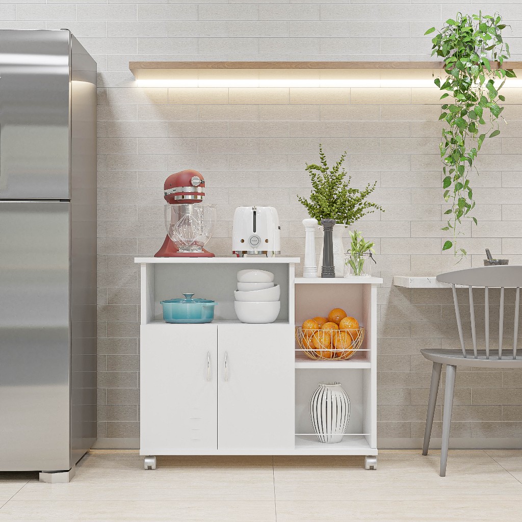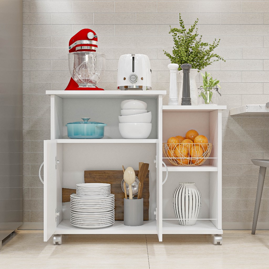 Balcão Fruteira Multiuso Cozinha Com Rodinhas Suporte Microondas - Móveis Bonatto