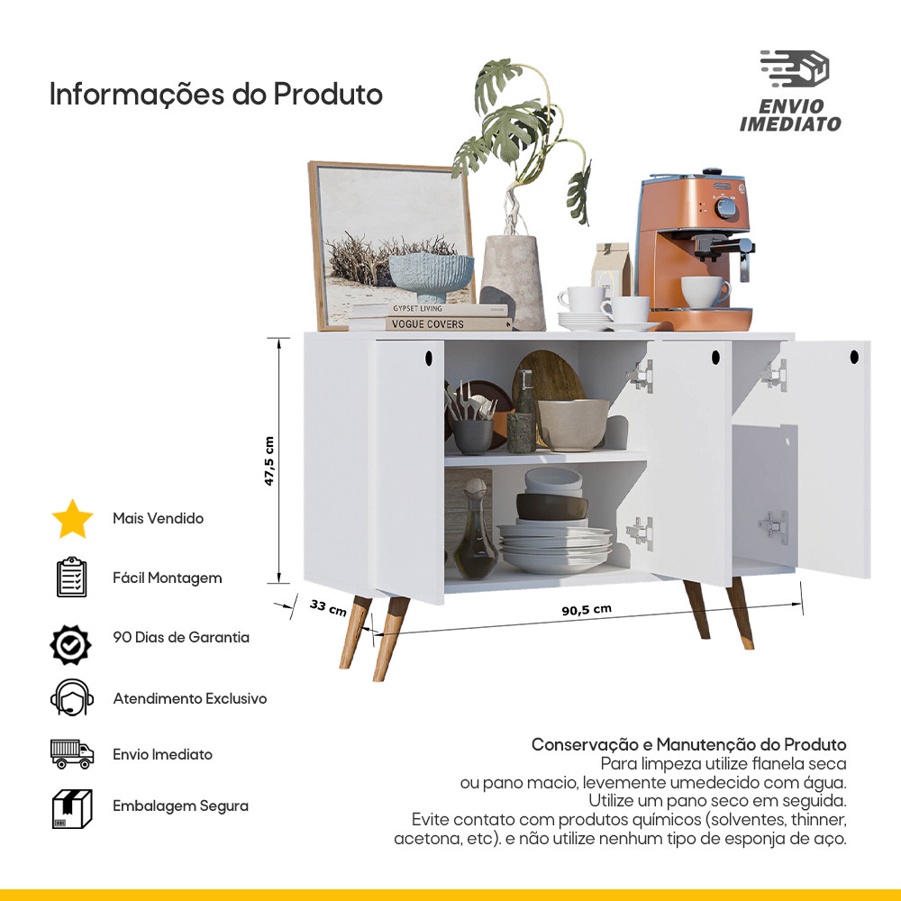 Rack Aparador para Sala 3 Portas com Prateleiras para Sala Cozinha Multiuso Móveis Bonatto
