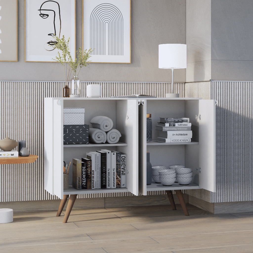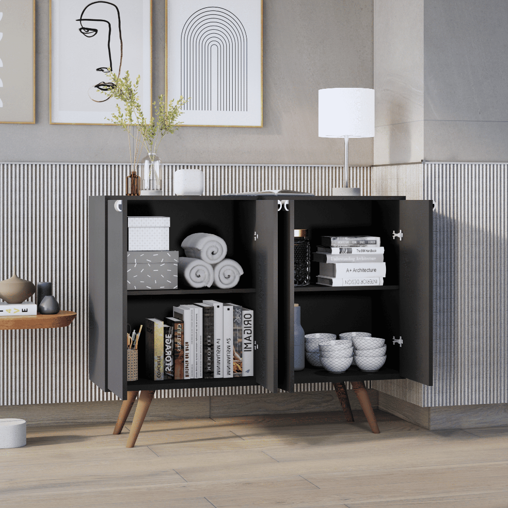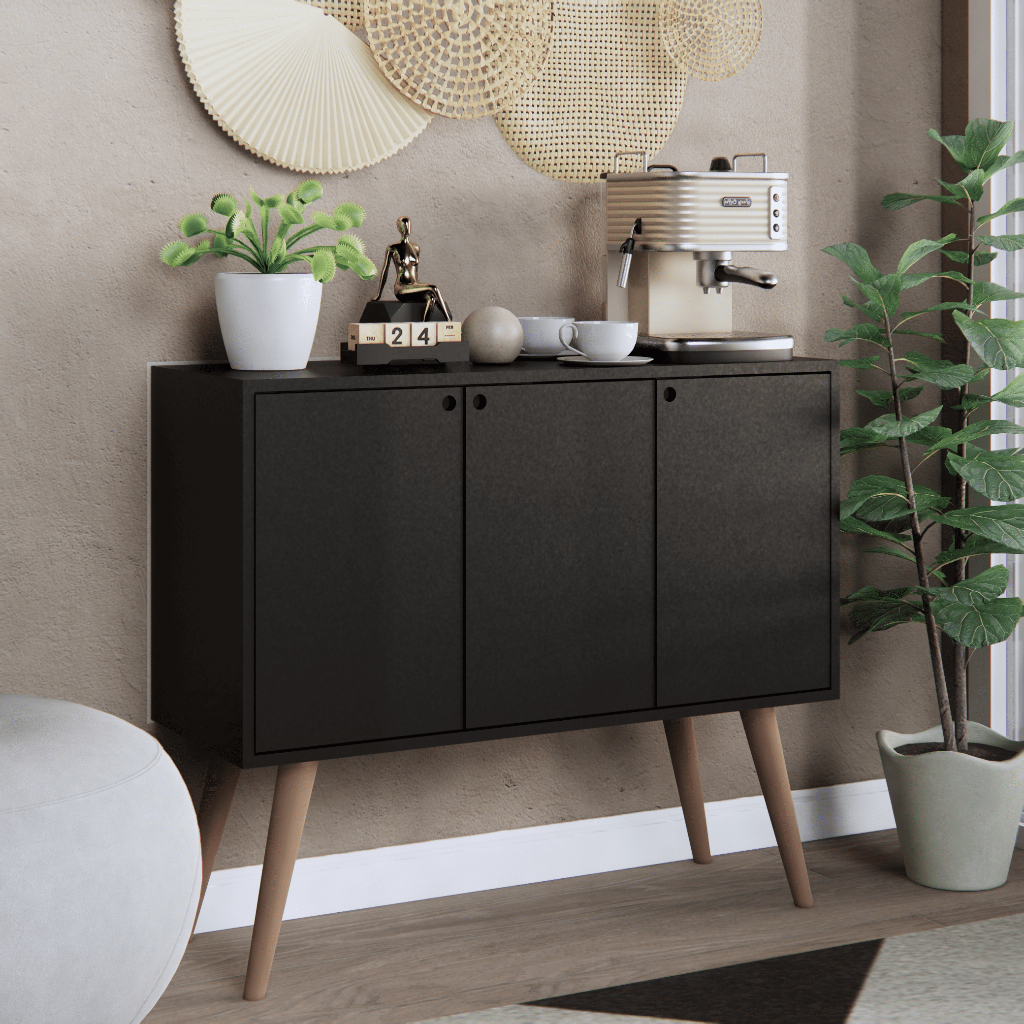 Buffet Aparador Rack 3 ou 4 Portas Sala Pés Balcão Retrô Palito Mais Vendido Móveis Bonatto