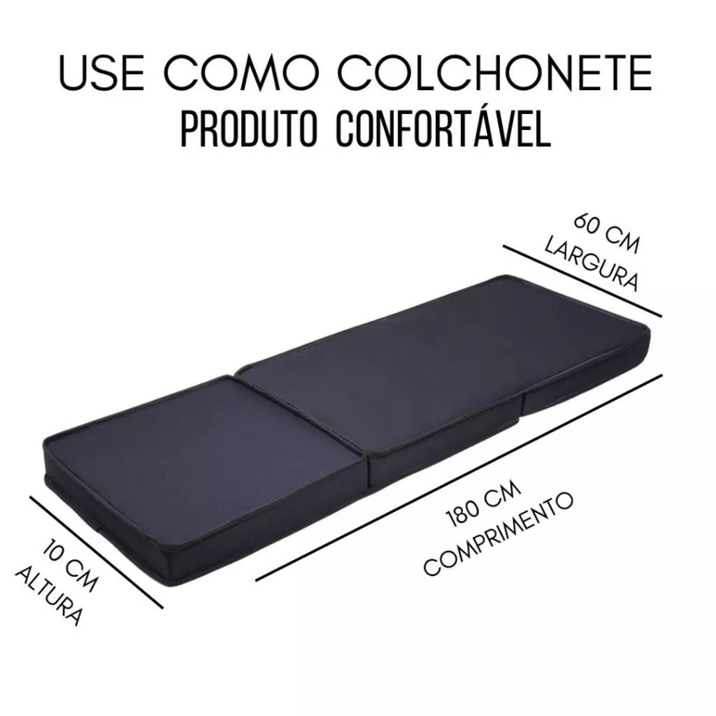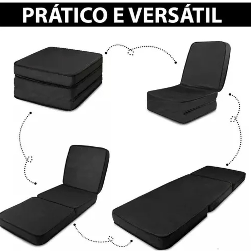 Puff Multiuso 3 Em 1 Solteiro Cama Sofá Dobrável Preto para Sala e Quarto - Móveis Bonatto