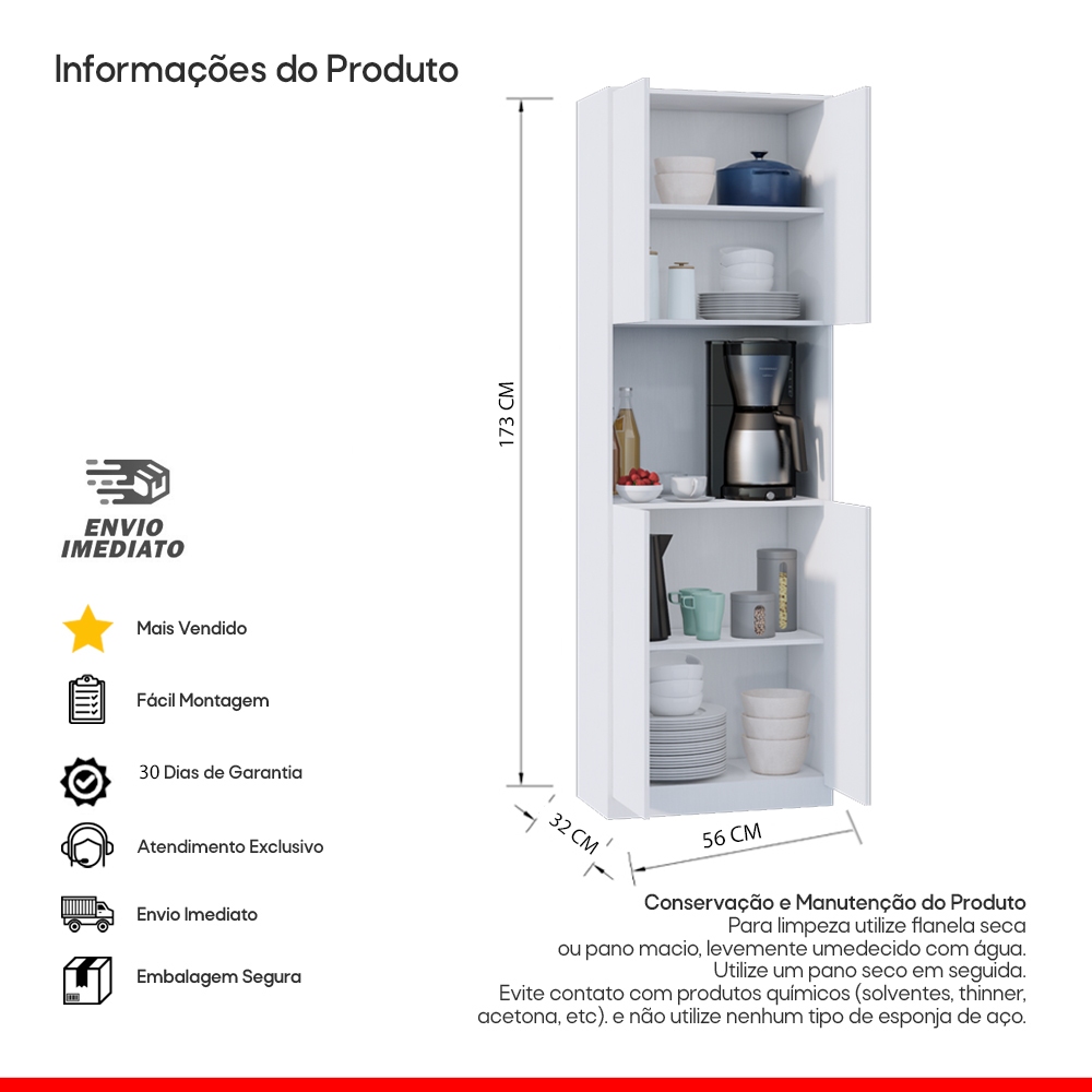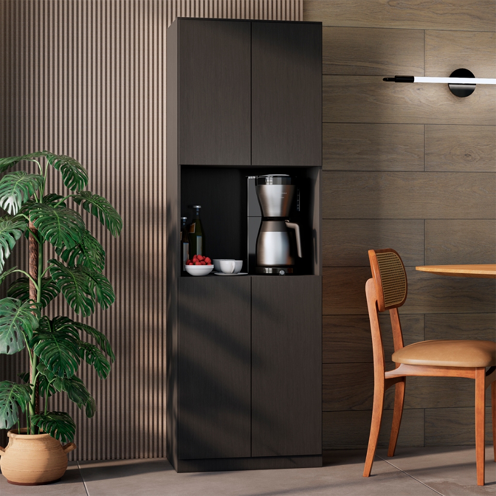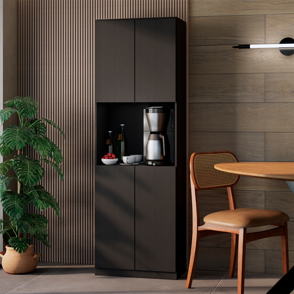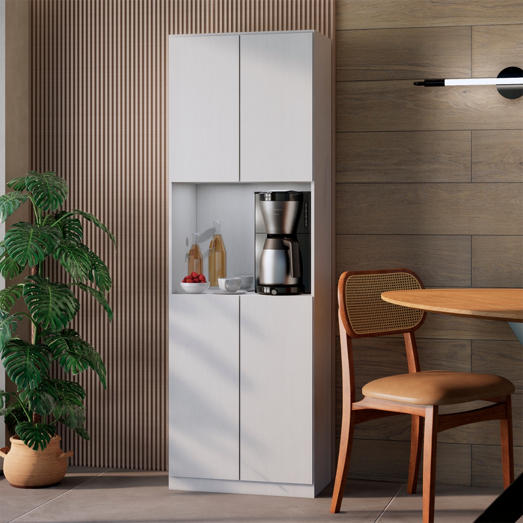 Armário Paneleiro de Cozinha Completo Torre quente para Microondas 4 Portas Multiuso com Prateleiras