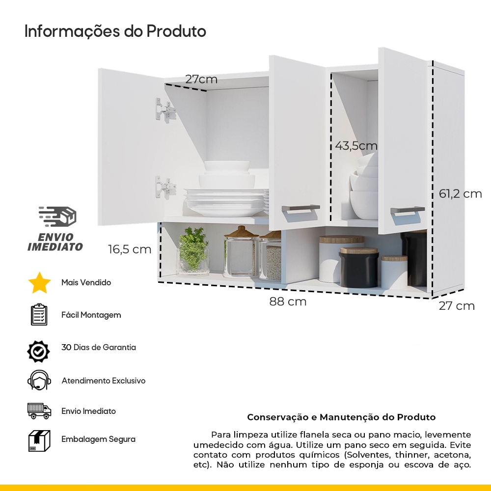 Armário Cozinha Multiuso 3 Portas Suspenso Aereo Nicho Quarto Lavanderia - Móveis Bonatto