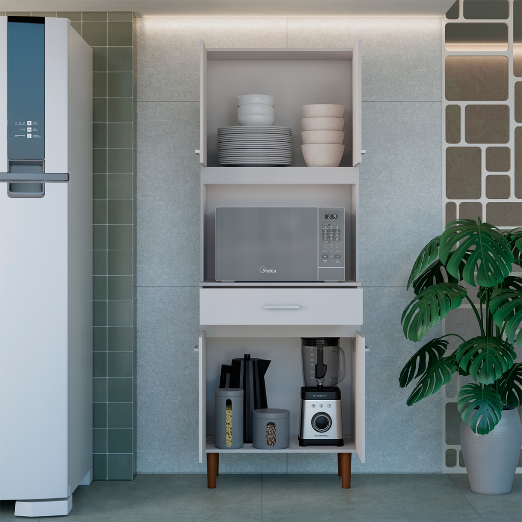 Armário de Cozinha Multiuso 4 Portas e Gaveta com Nicho Microondas e Forno Organizador Compacto