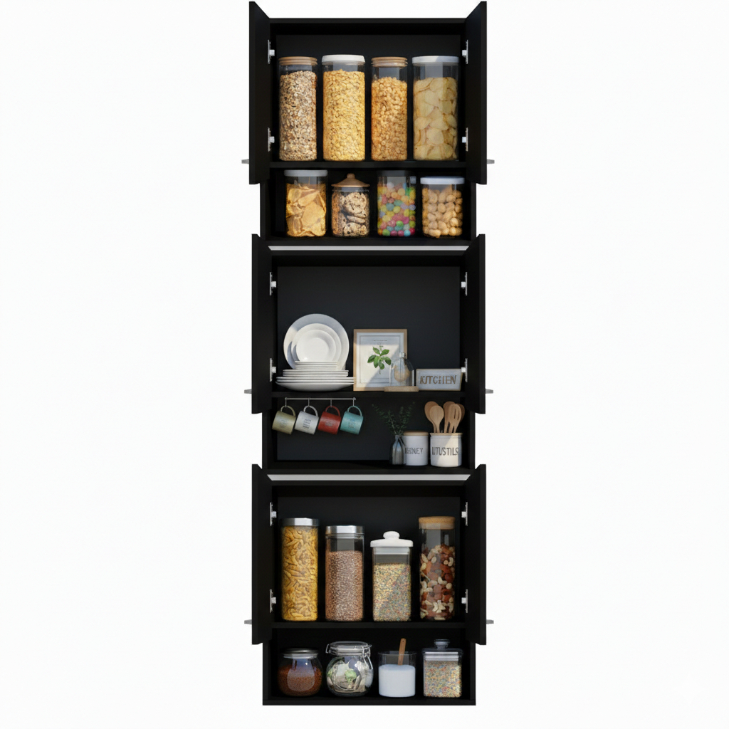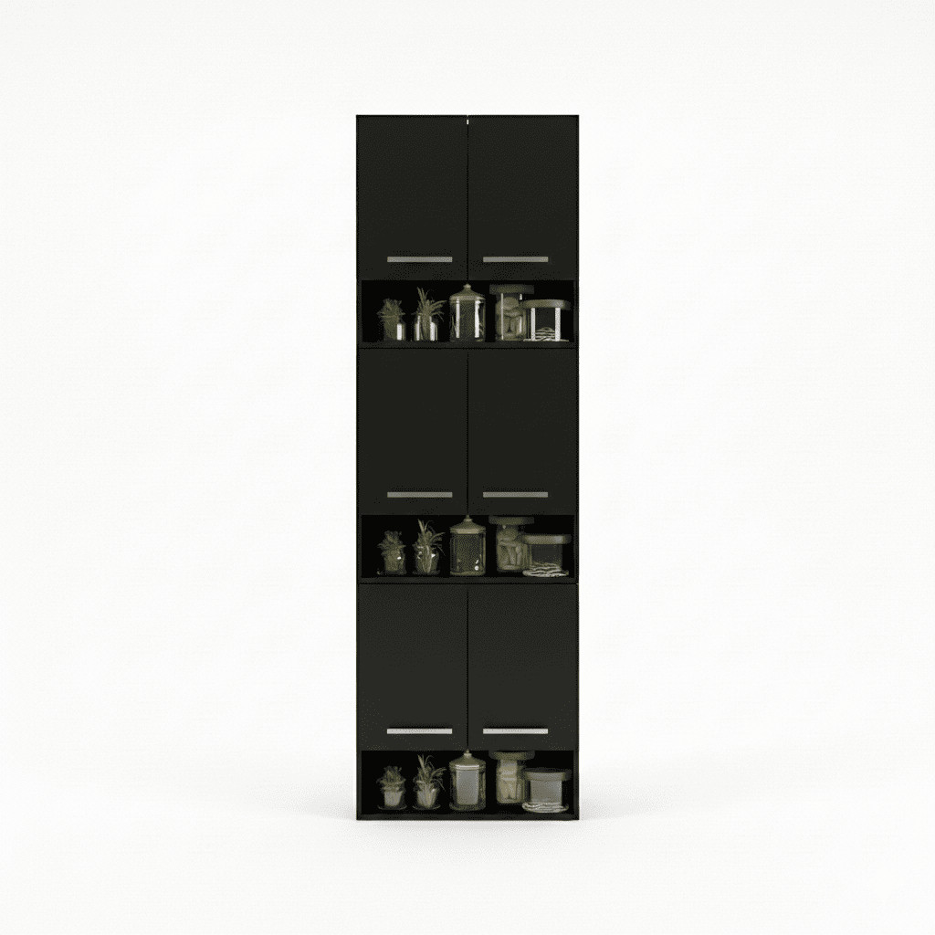 Armário de Cozinha Suspenso 6 Portas Torre Multiuso para Mantimentos e Utensílios Preto Industrial