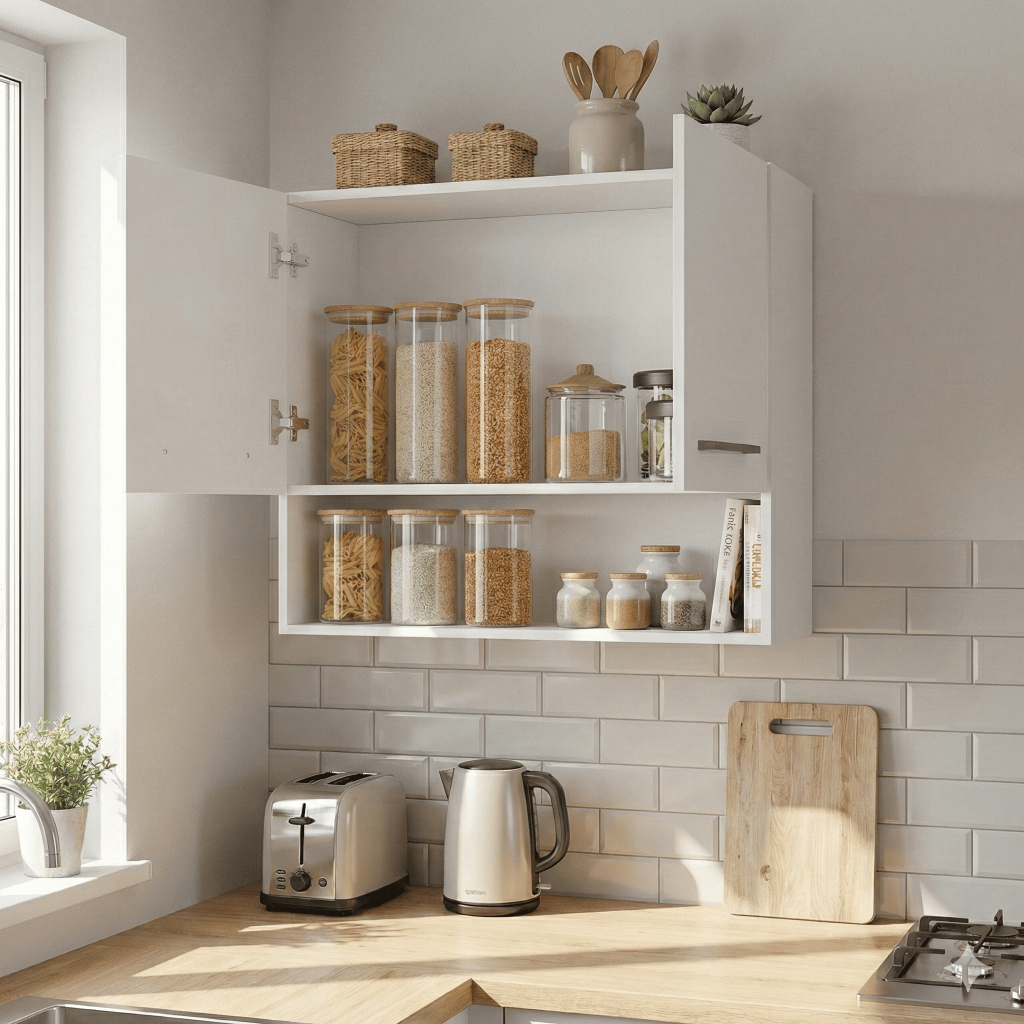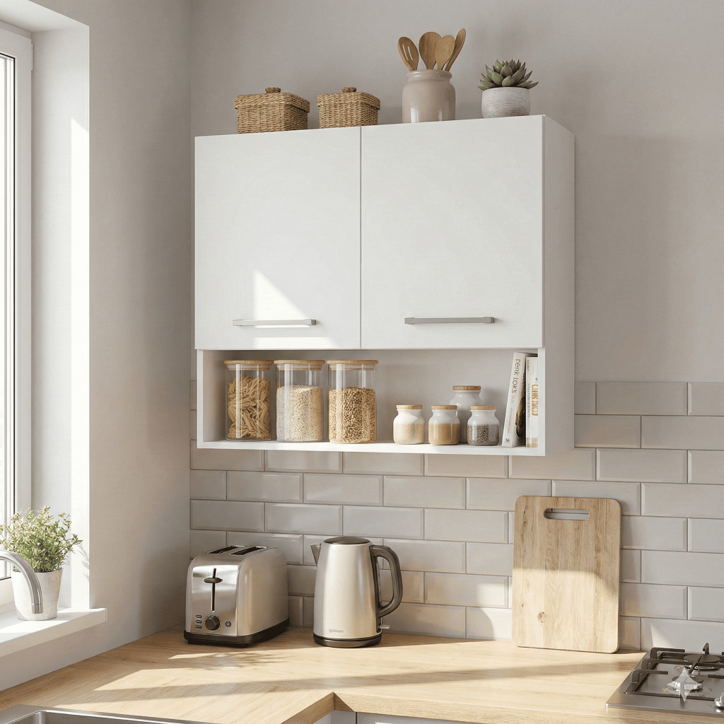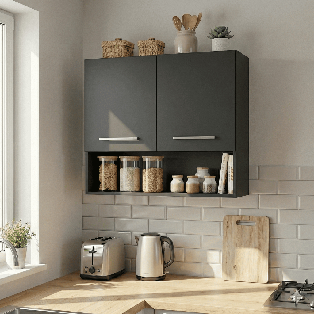 Gabinete Aéreo de Parede com Suporte para Potes e Utensílios de Cozinha