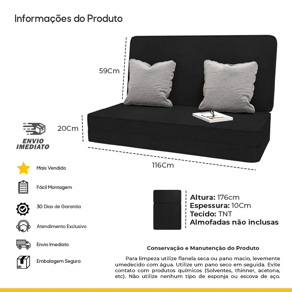 Cama Casal Solteiro 3 em 1 Puff Multiuso Sofá Colchonete Sala Quarto Visita Dobrável Móveis Bonatto