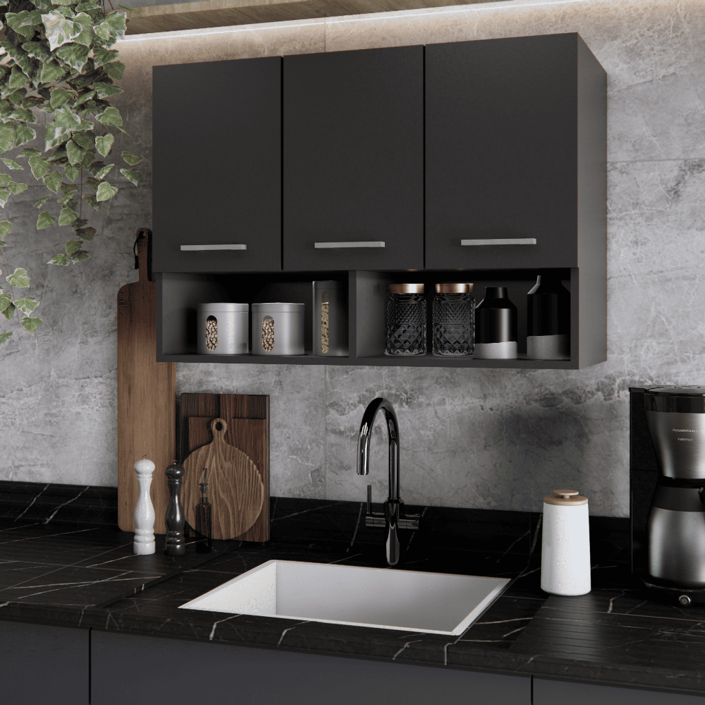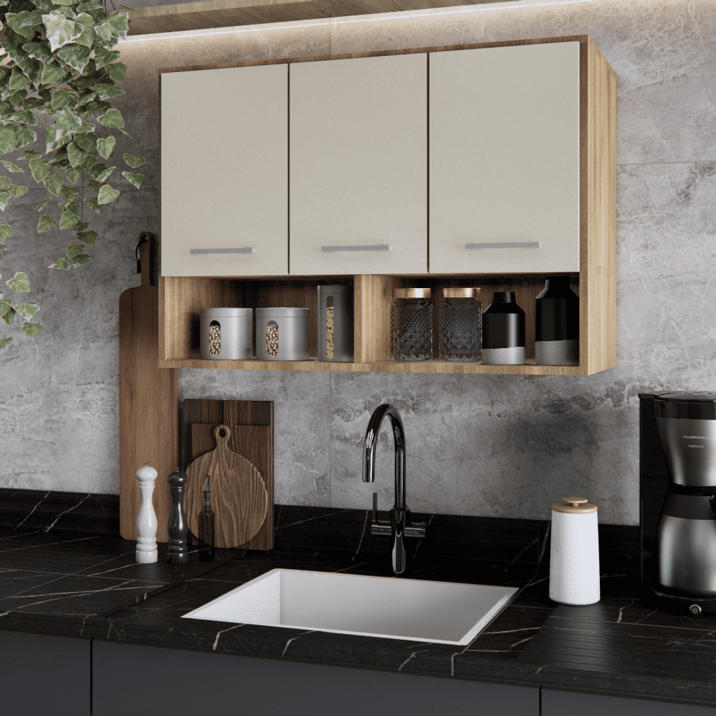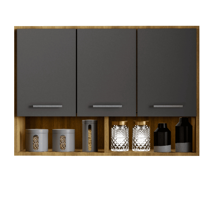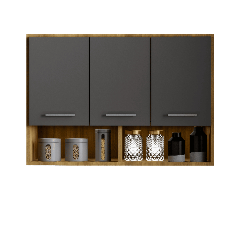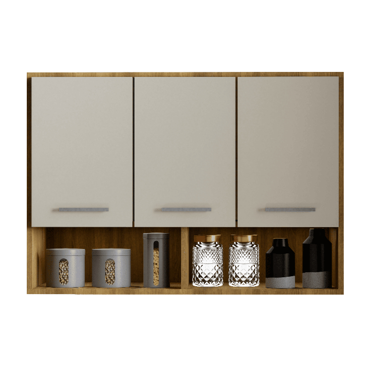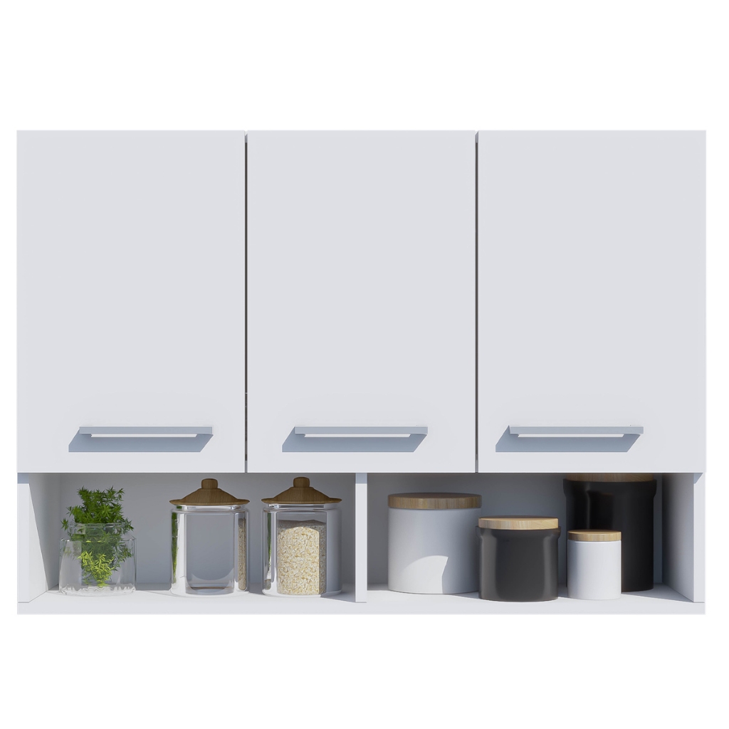 Armário de Cozinha Aereo 3 Portas + Nicho Multiuso Modular Compacto Organizador Varias cores