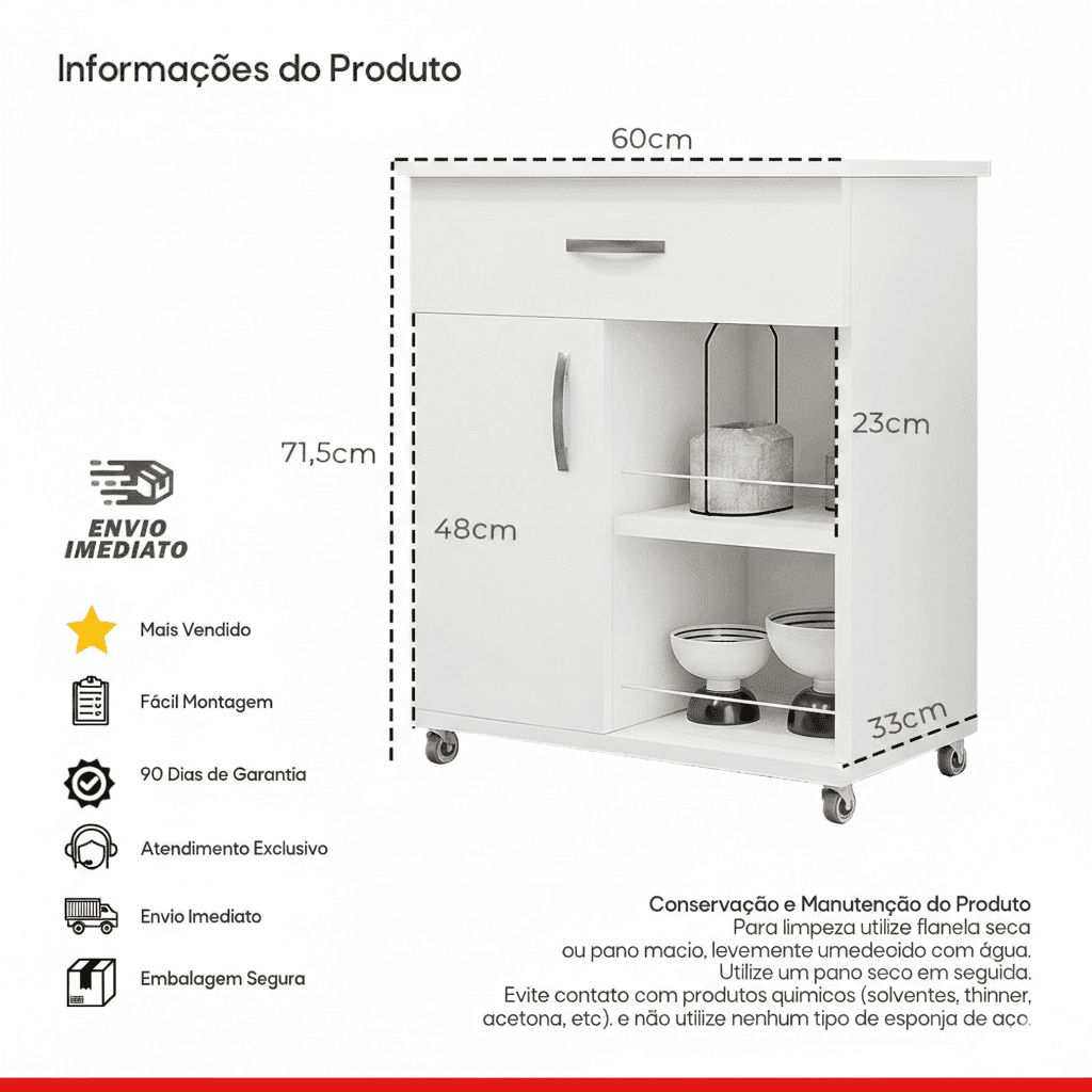 Móvel Organizador de Cozinha com Cesto de Fruta Porta e Design Moderno