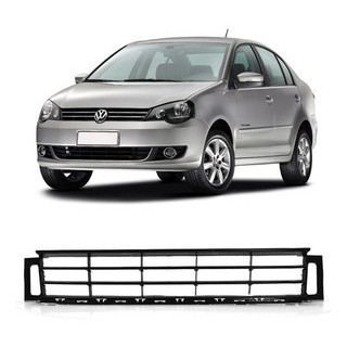 Grade Central Parachoque Dianteiro Polo 2012 2013 2014 Preta Com Furo Friso