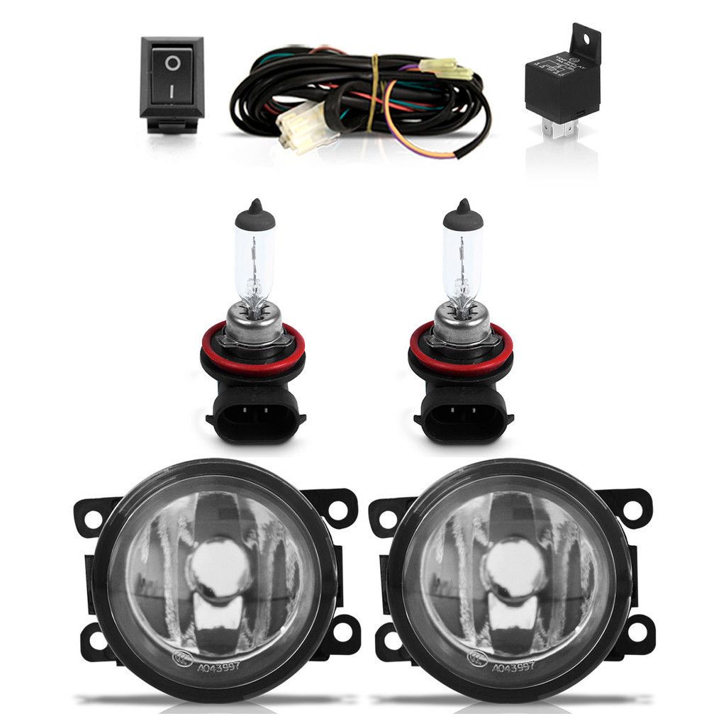 Kit Par Farol Milha Auxiliar Clio 2013 2014 A 2016 + Par Lâmpada Halógena Completo Lente Lisa Vidro