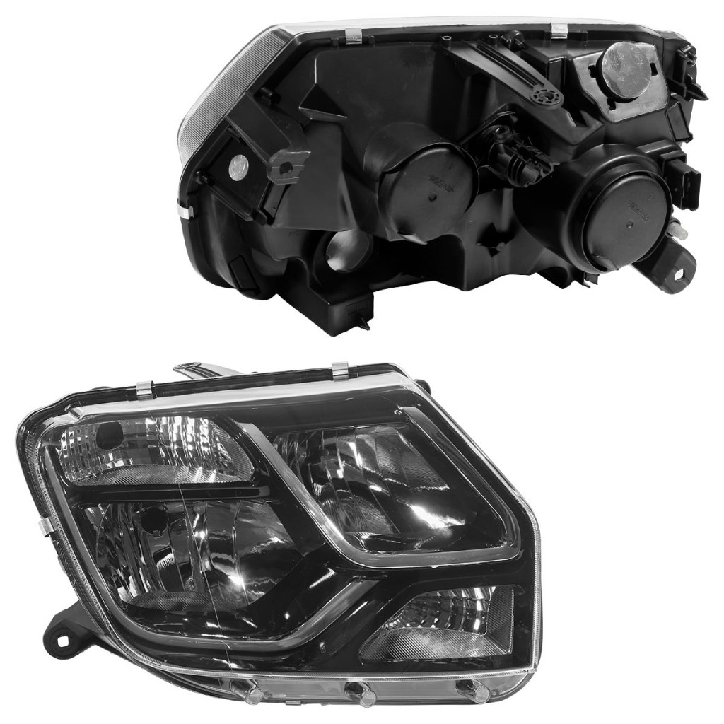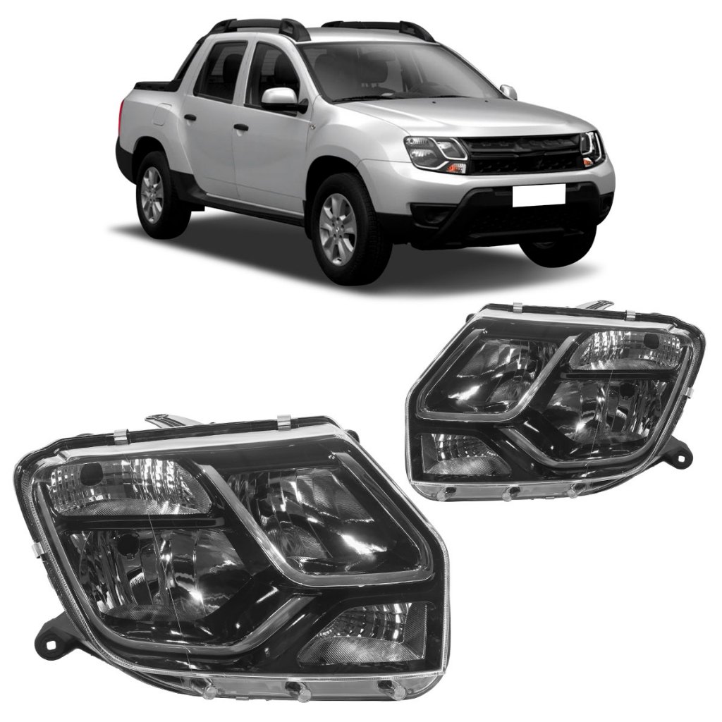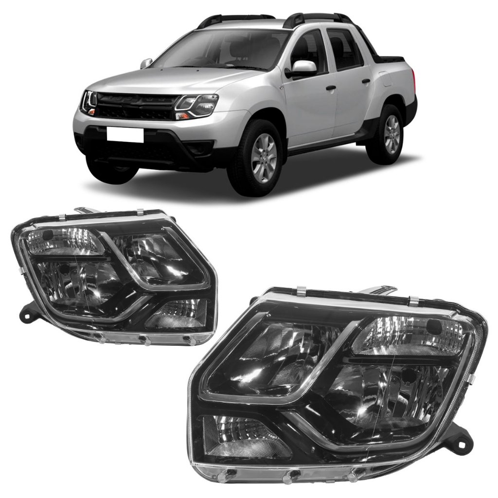 Farol Dianteiro Duster Oroch 2016 2017 Máscara Negra Foco Duplo Lente Lisa