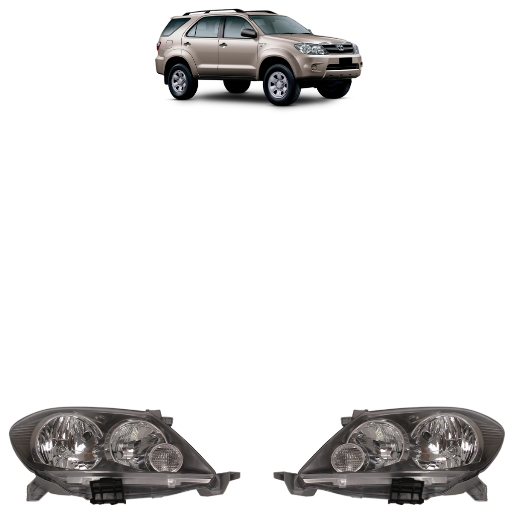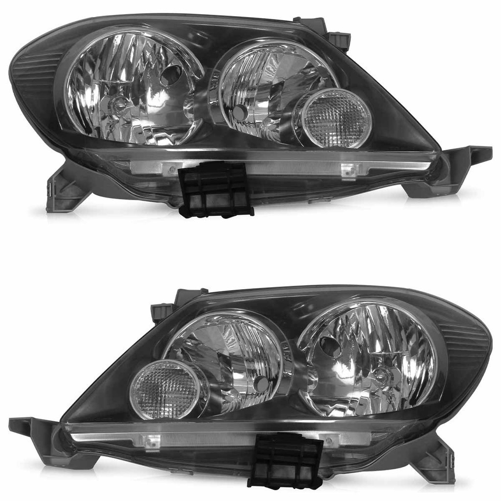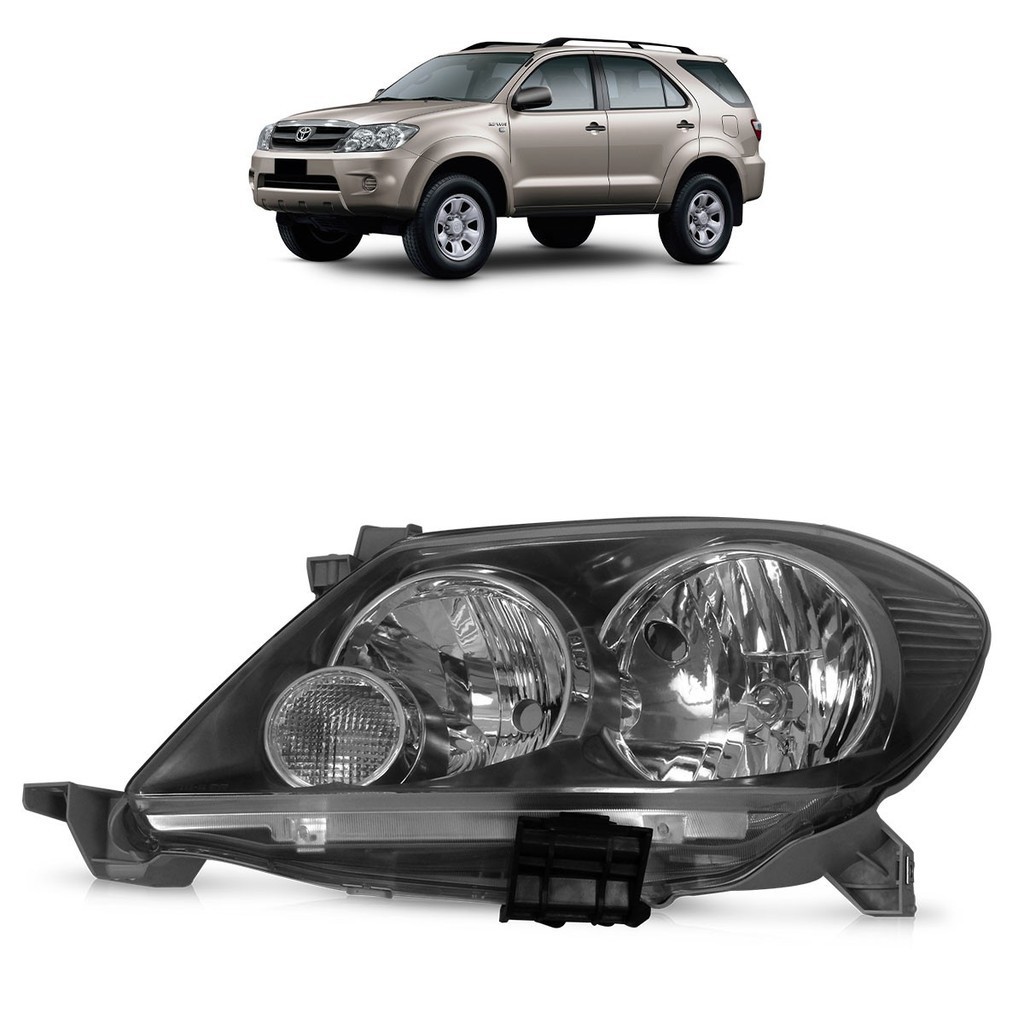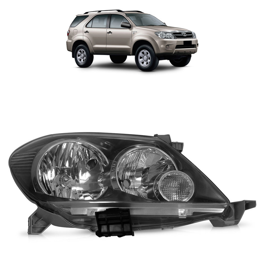 Farol Dianteiro Hilux SW4 2005 2006 2007 2008 Máscara Negra Lente Lisa Acrilico