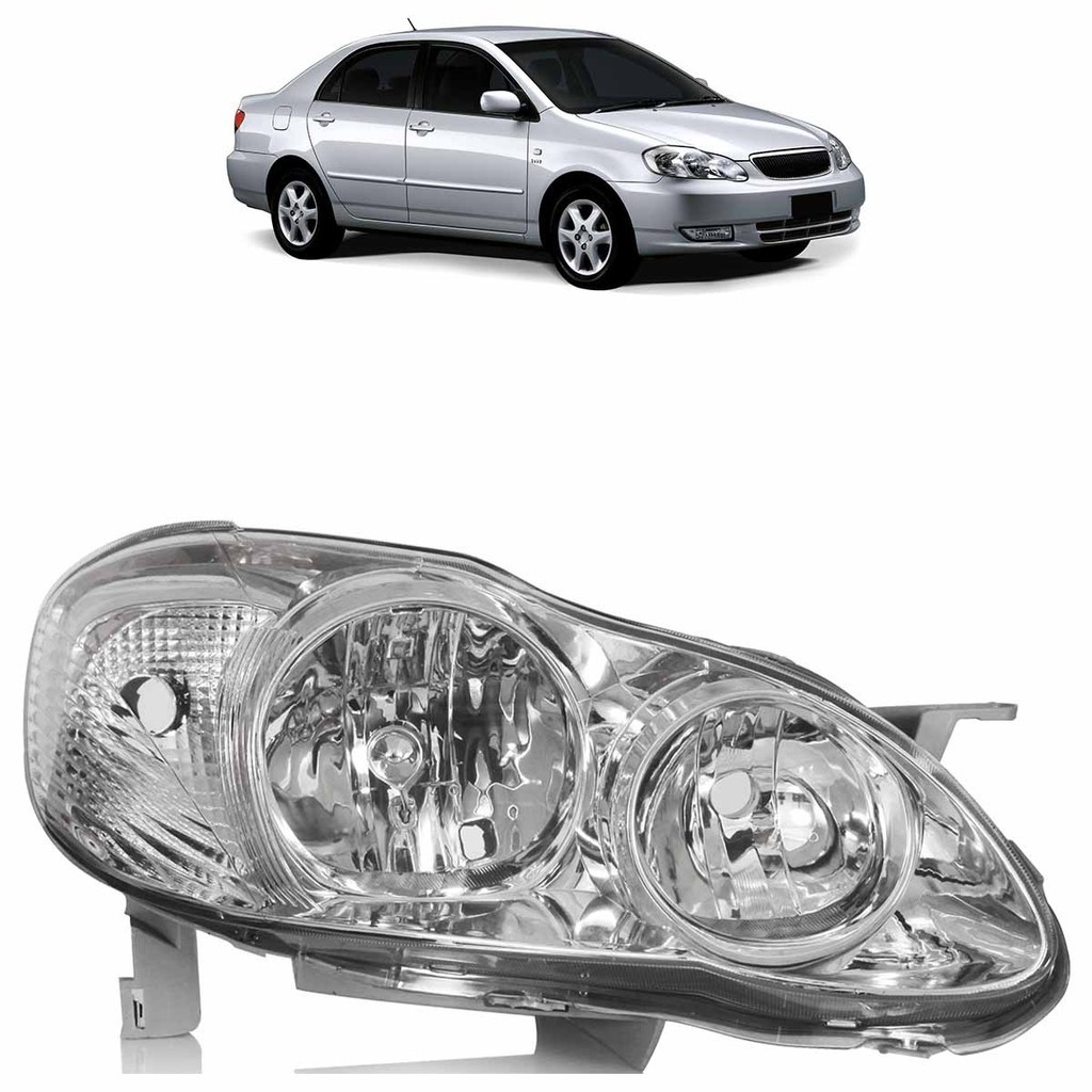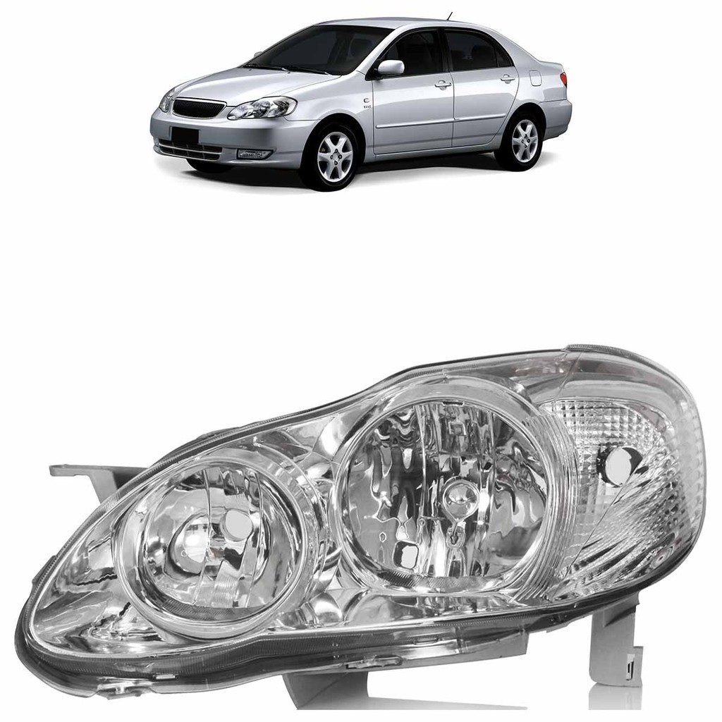 Farol Dianteiro Corolla 2005 2006 2007 2008 2009 Máscara Cromada Foco Duplo Lente Lisa Acrilico