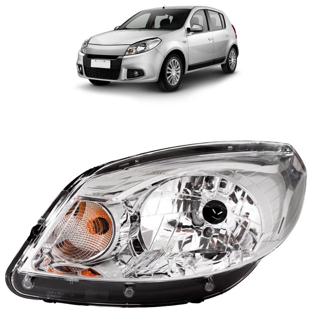 Farol Dianteiro Sandero 2012 2013 2014 Máscara Cromada Foco Simples Lente Lisa