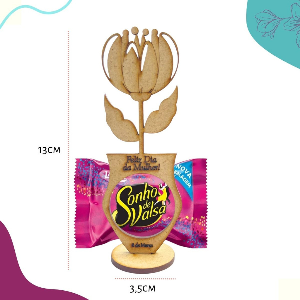 Kit 100 Centro De Mesa Porta Bombom Dia Da Mulher Em Mdf