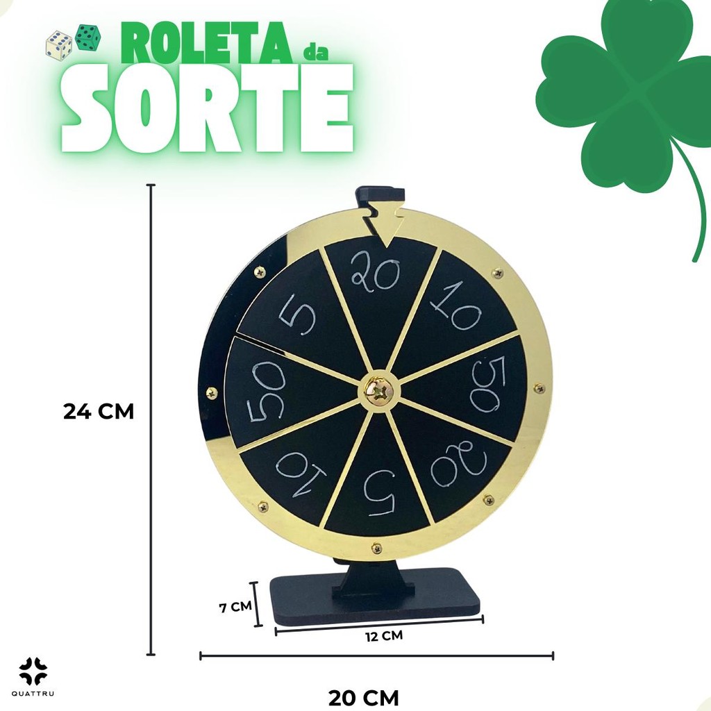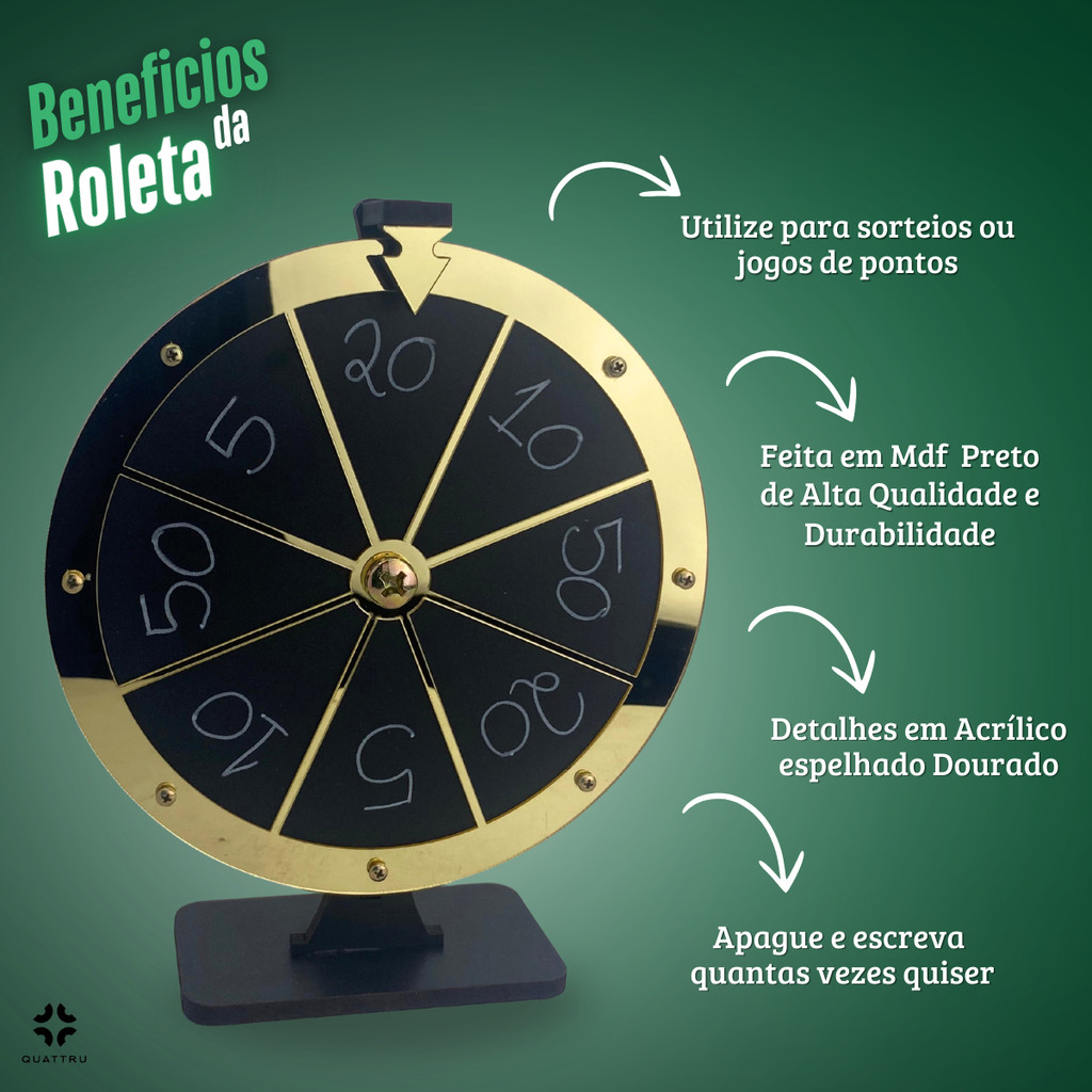 Roleta Jogos Sorte Sorteios Mdf Preto Acrílico Dourado - LANÇAMENTO!