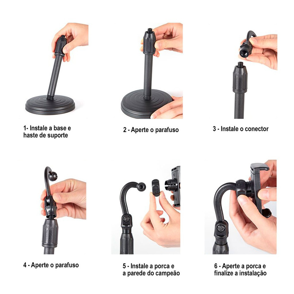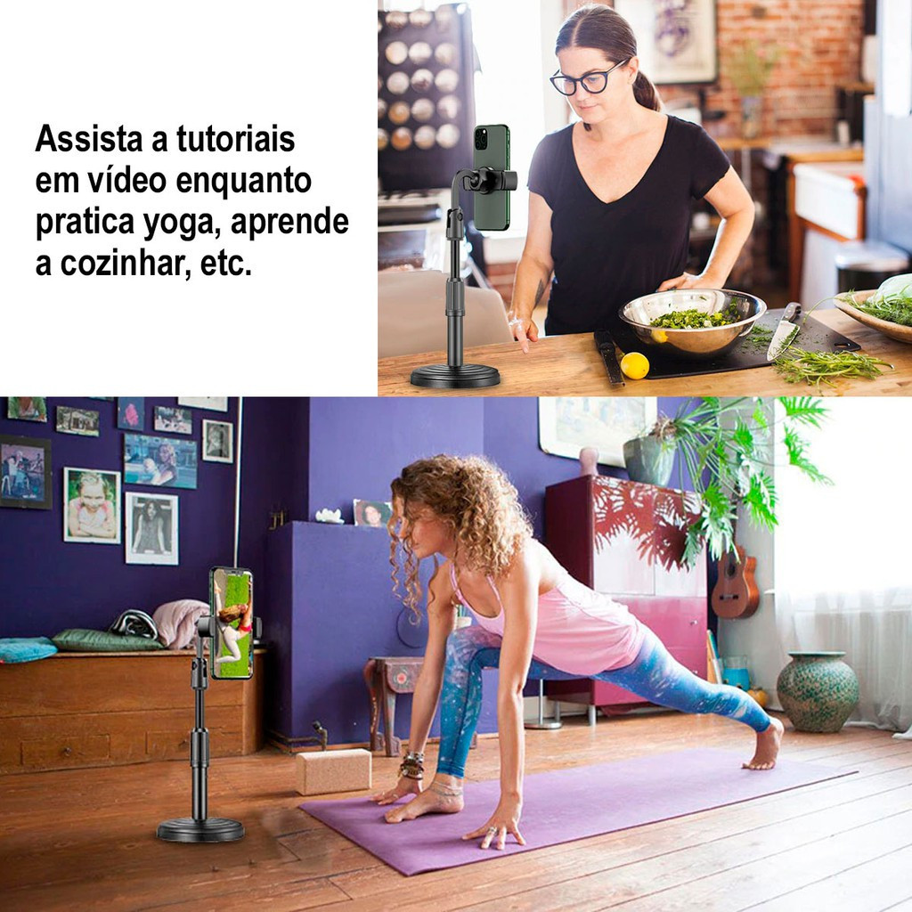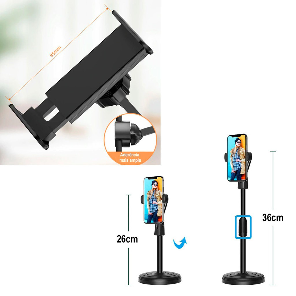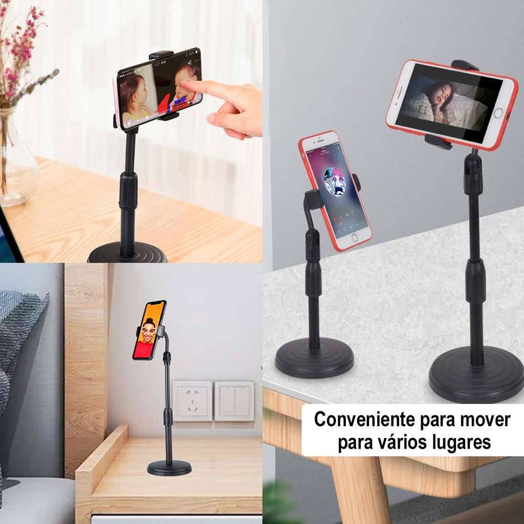 Suporte Para Celular De Mesa Tripé Com Braço Articulado 360º Altura Ajustável
