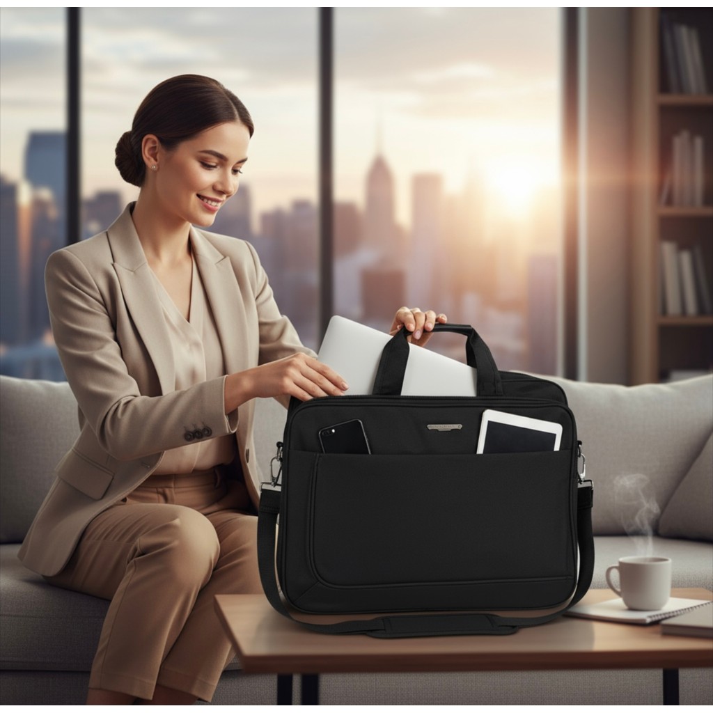 Meij Bolsa Pasta Executiva para Notebook com Alça Transversal Grande em Nylon Feminina e Masculina