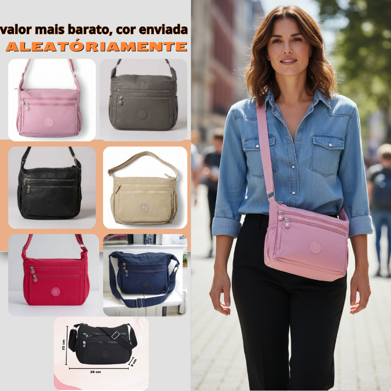 Bolsa Feminina Transversal de Ombro Multi Bolsos Nylon Crossbody