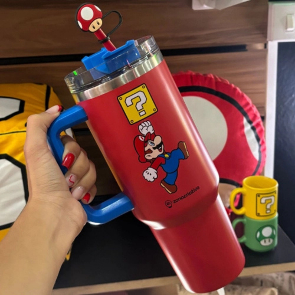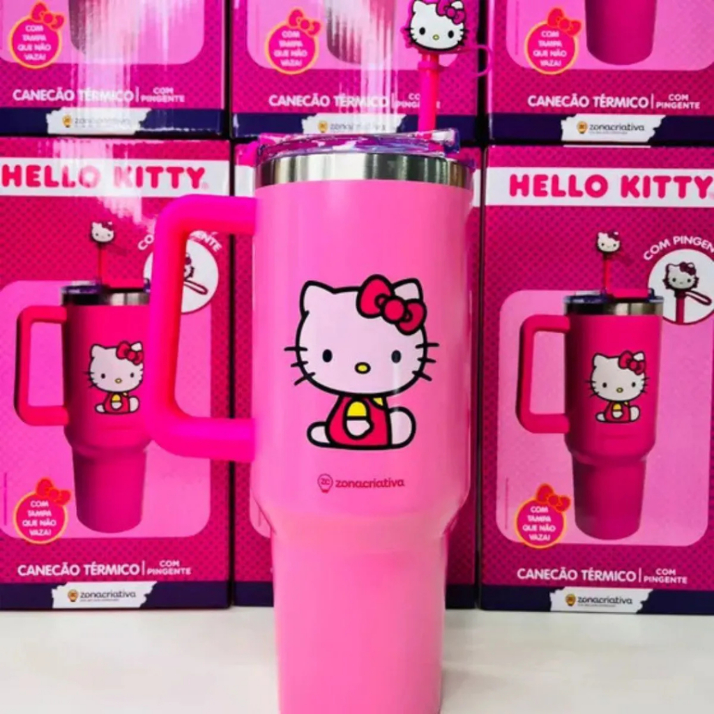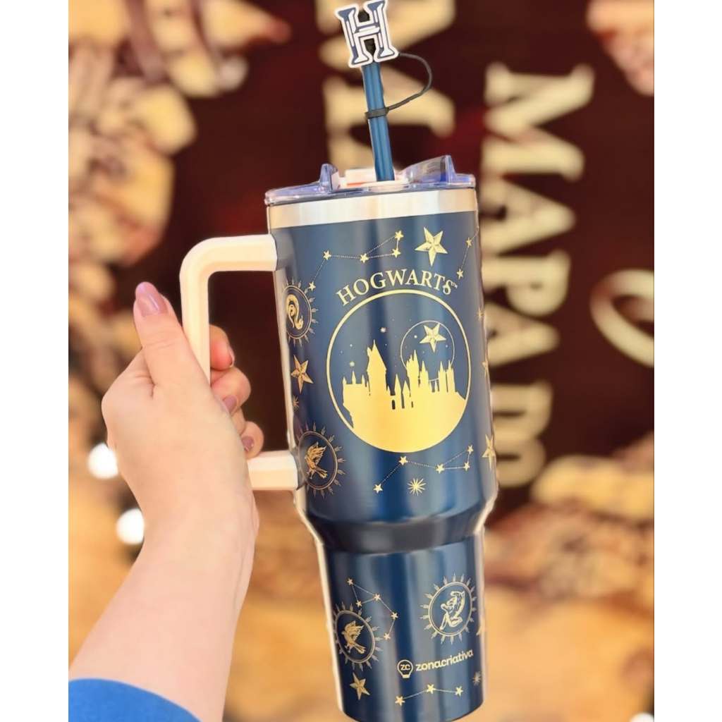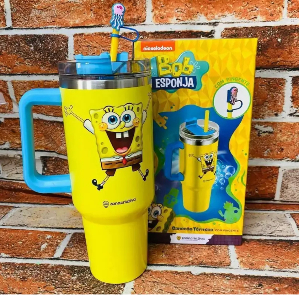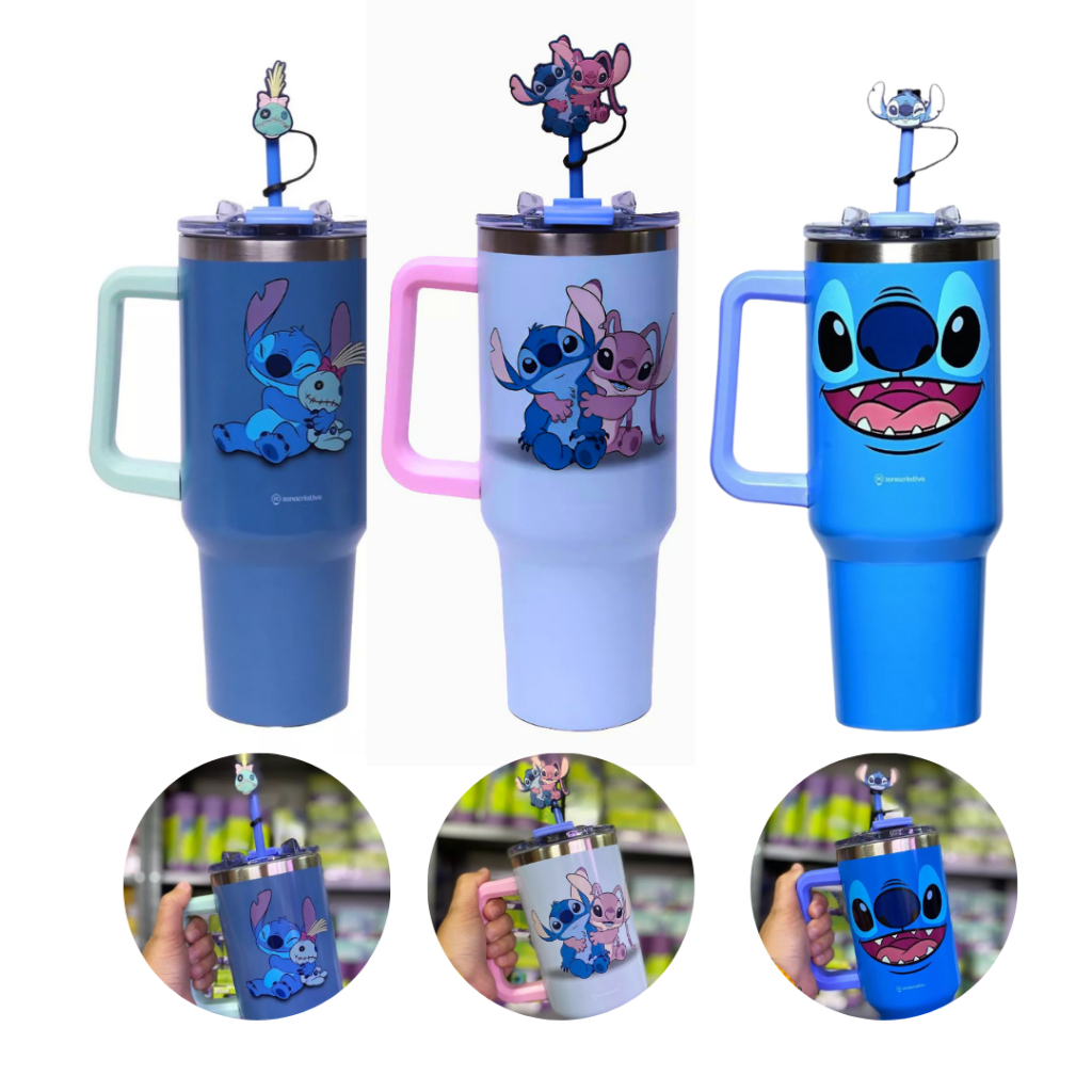 Copão Garrafa Tumbler Zona Criativa Com Canudo e Pingente Stitch Harry Potter Bob Esponja Hello Kitty Disney Original