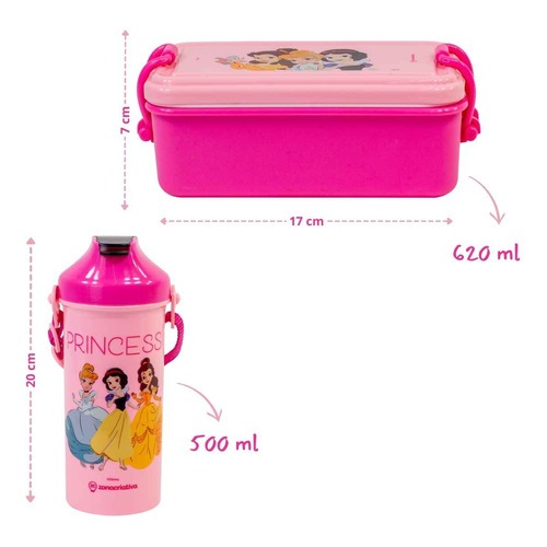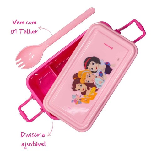 Kit Lancheira Marmita com Copo e Talher Princesas Disney Original Zona Criativa Cinderela Bela Branca de Neve