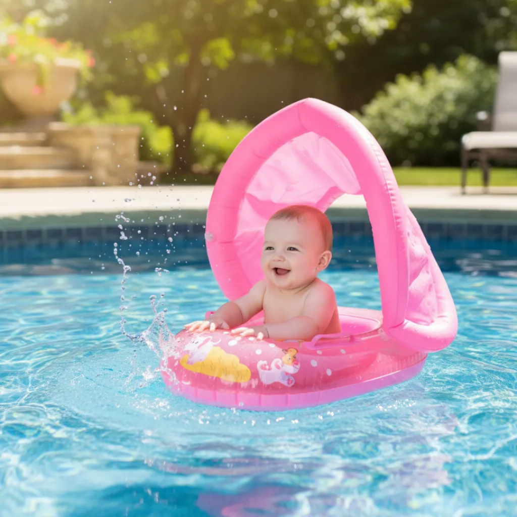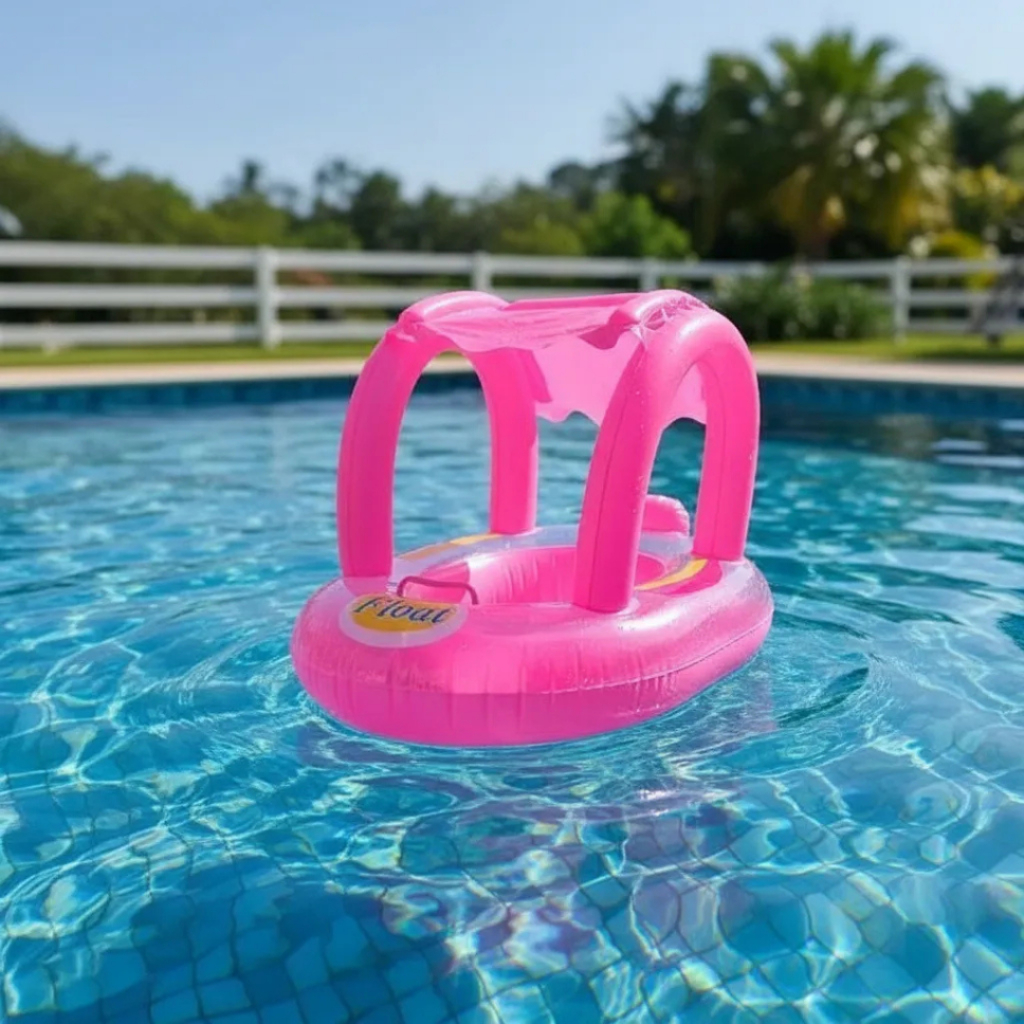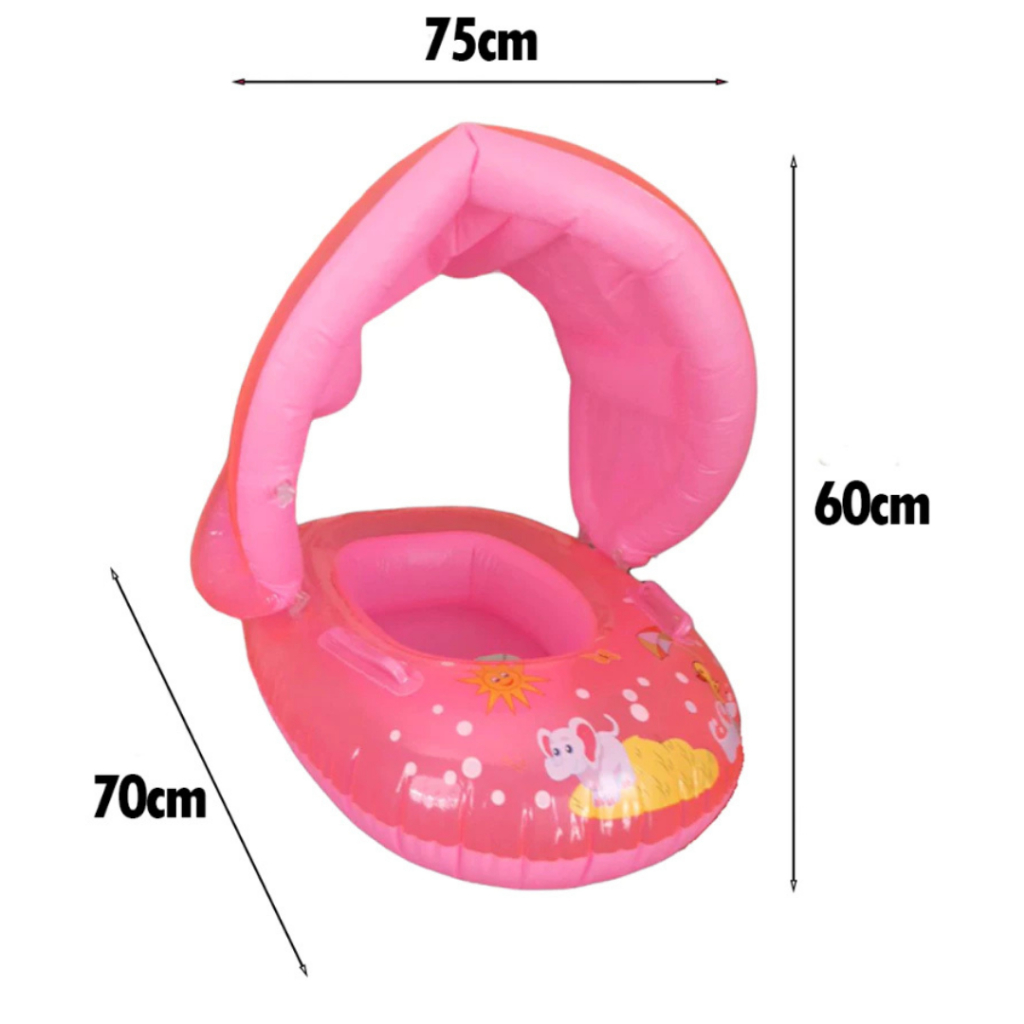 Boia Bebê Com Cobertura Removível Inflável Protege Do Sol Assento Fralda Menino Menina Rosa Azul