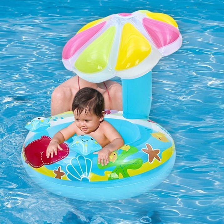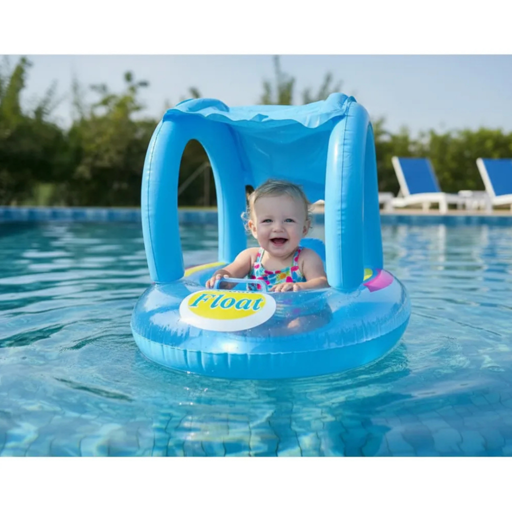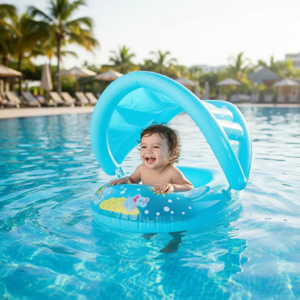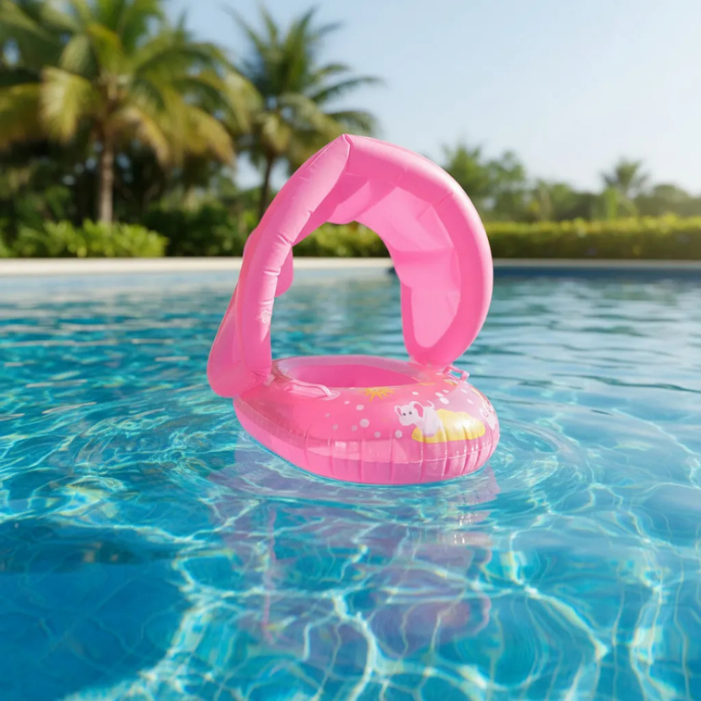 Boia Bebê Com Cobertura Removível Inflável Protege Do Sol Assento Fralda Menino Menina Rosa Azul