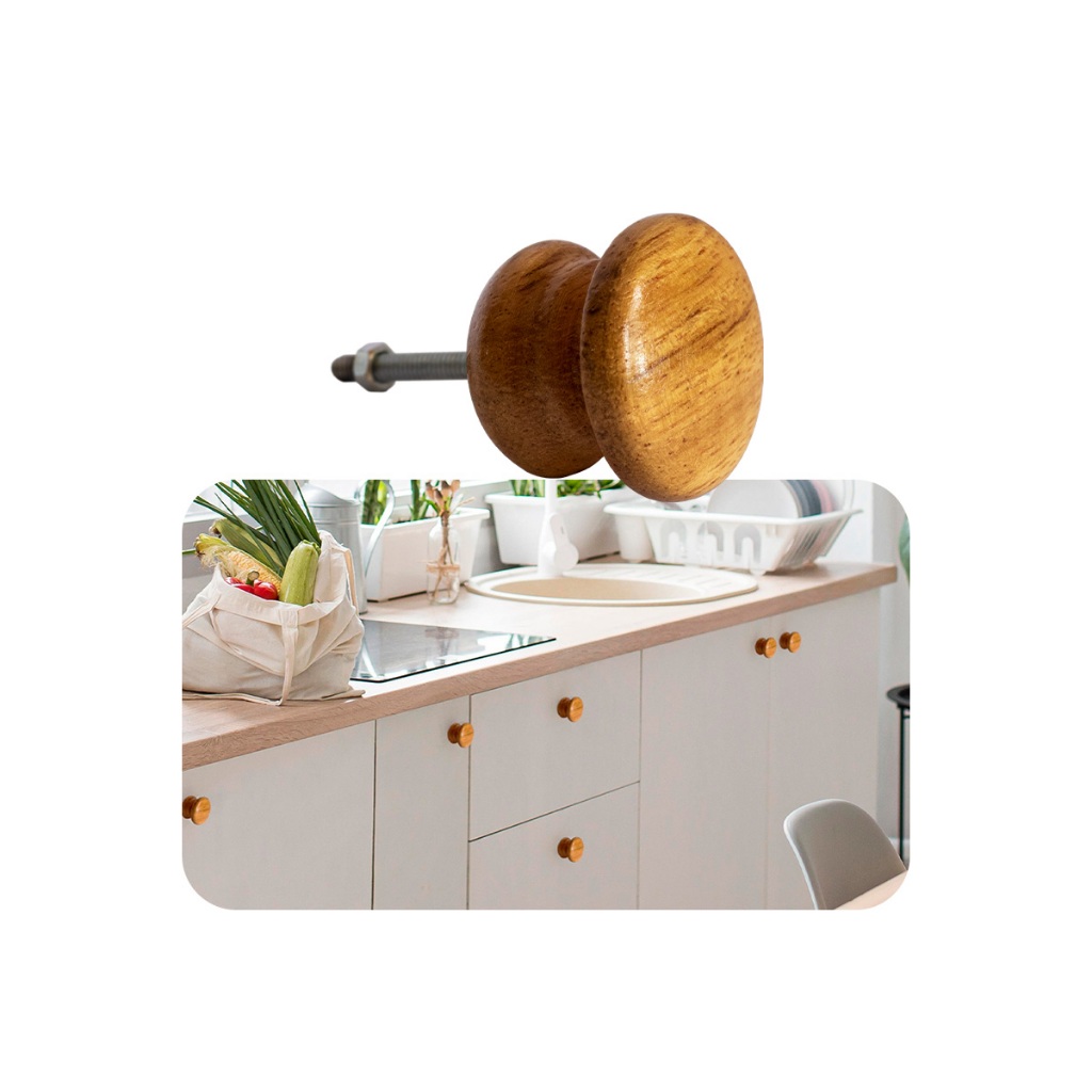 Kit 10 Puxadores Madeira Oval De Gaveta E Porta Com Porca Rosca