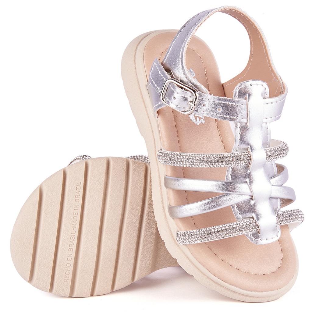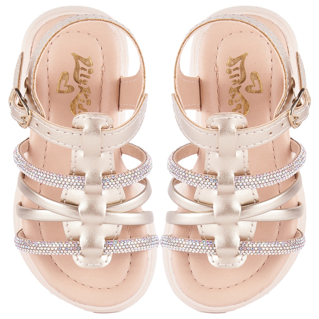 Sandália Infantil Menina com Tira em Strass Lily Kids Metalizada Ouro Light