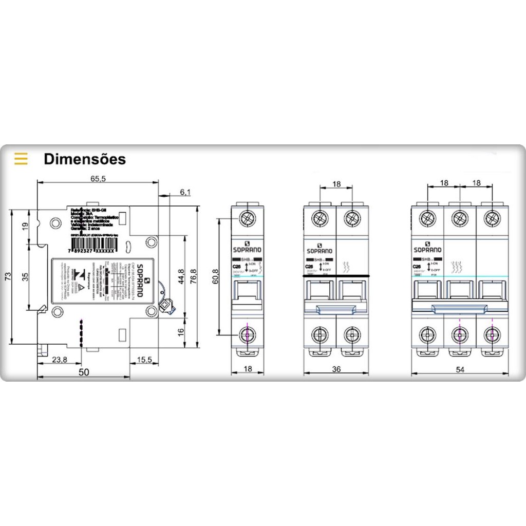 DISJUNTOR DIN 1P UNIPOLAR 32A CURVA C 3KA SOPRANO