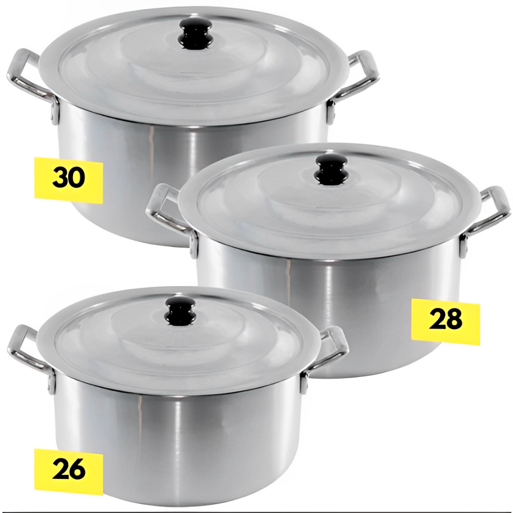 Kit 3 Caldeirões de Alumínio Industrial Panelas Grandes Para Hotel e Restaurante 26 28 e 30 cm