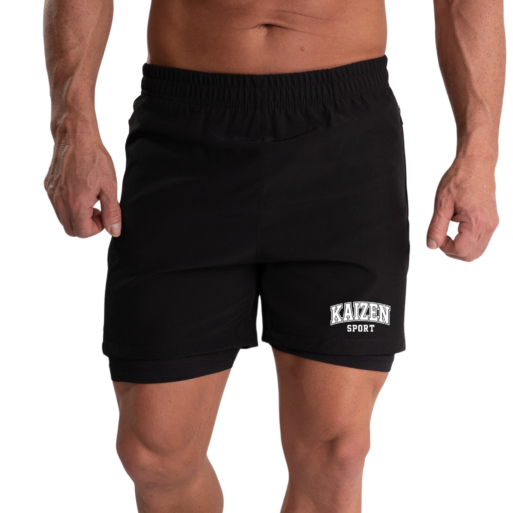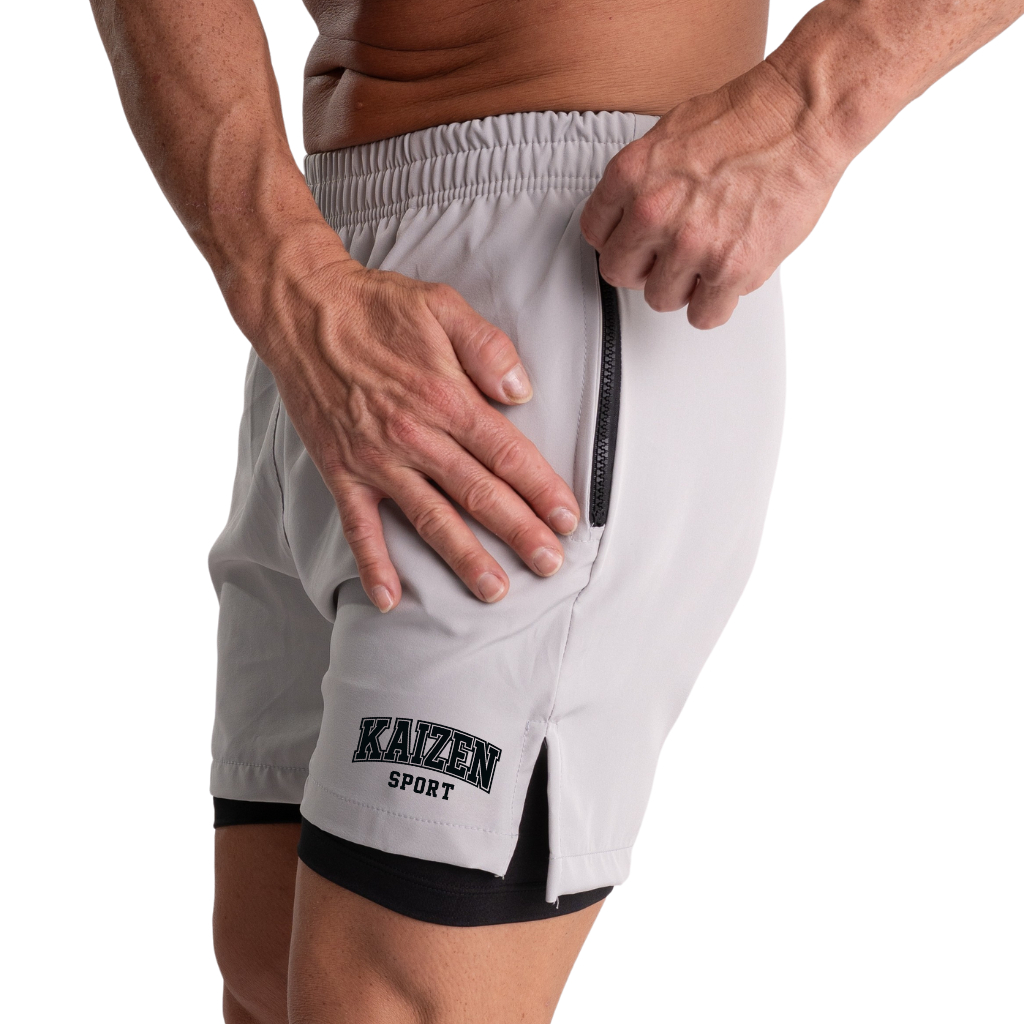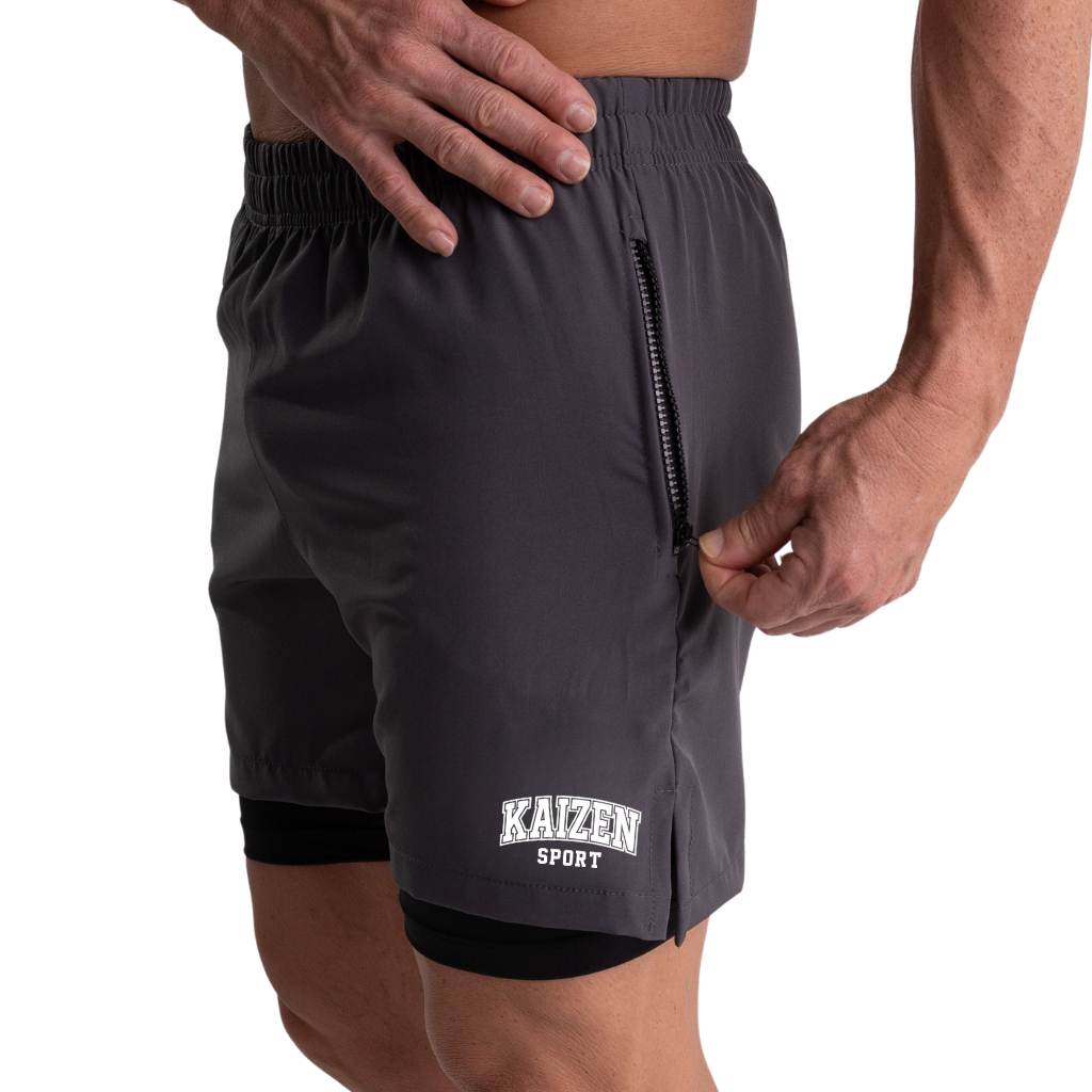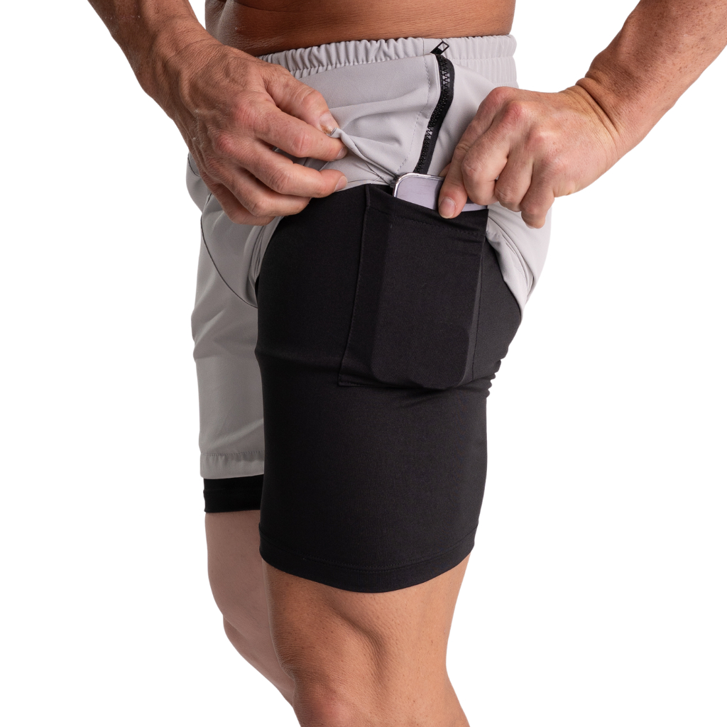 bermuda 2 em 1 tactel com elastano com ziper bolso interno para celular para academia e corrida