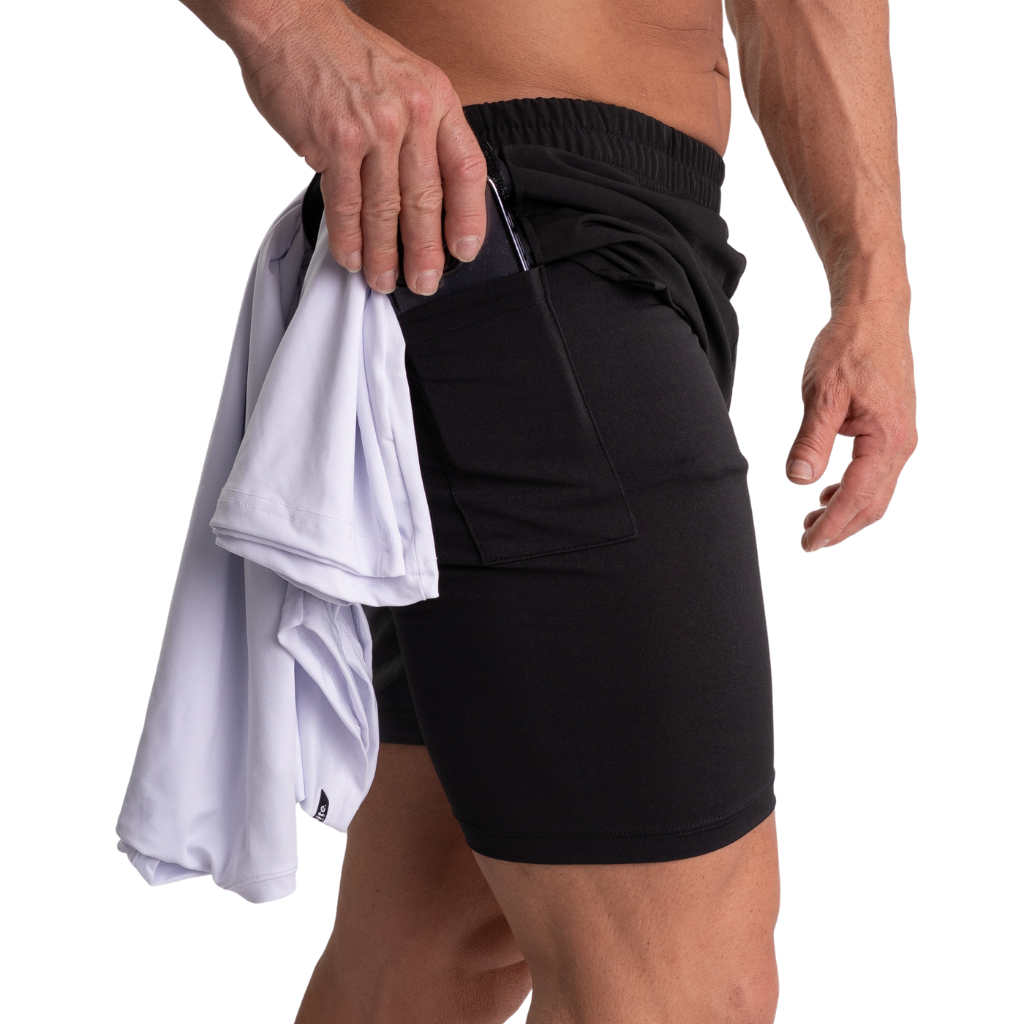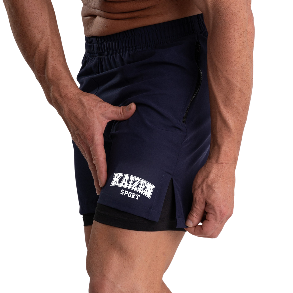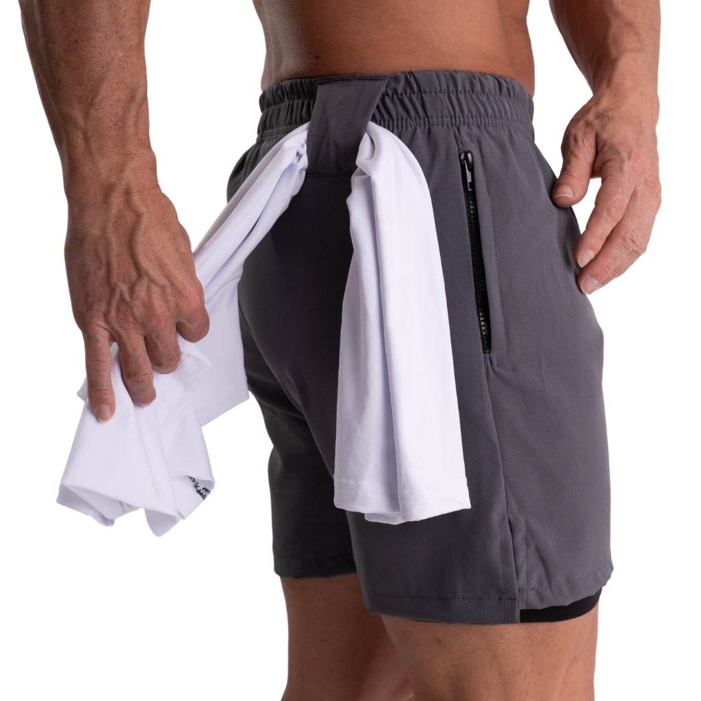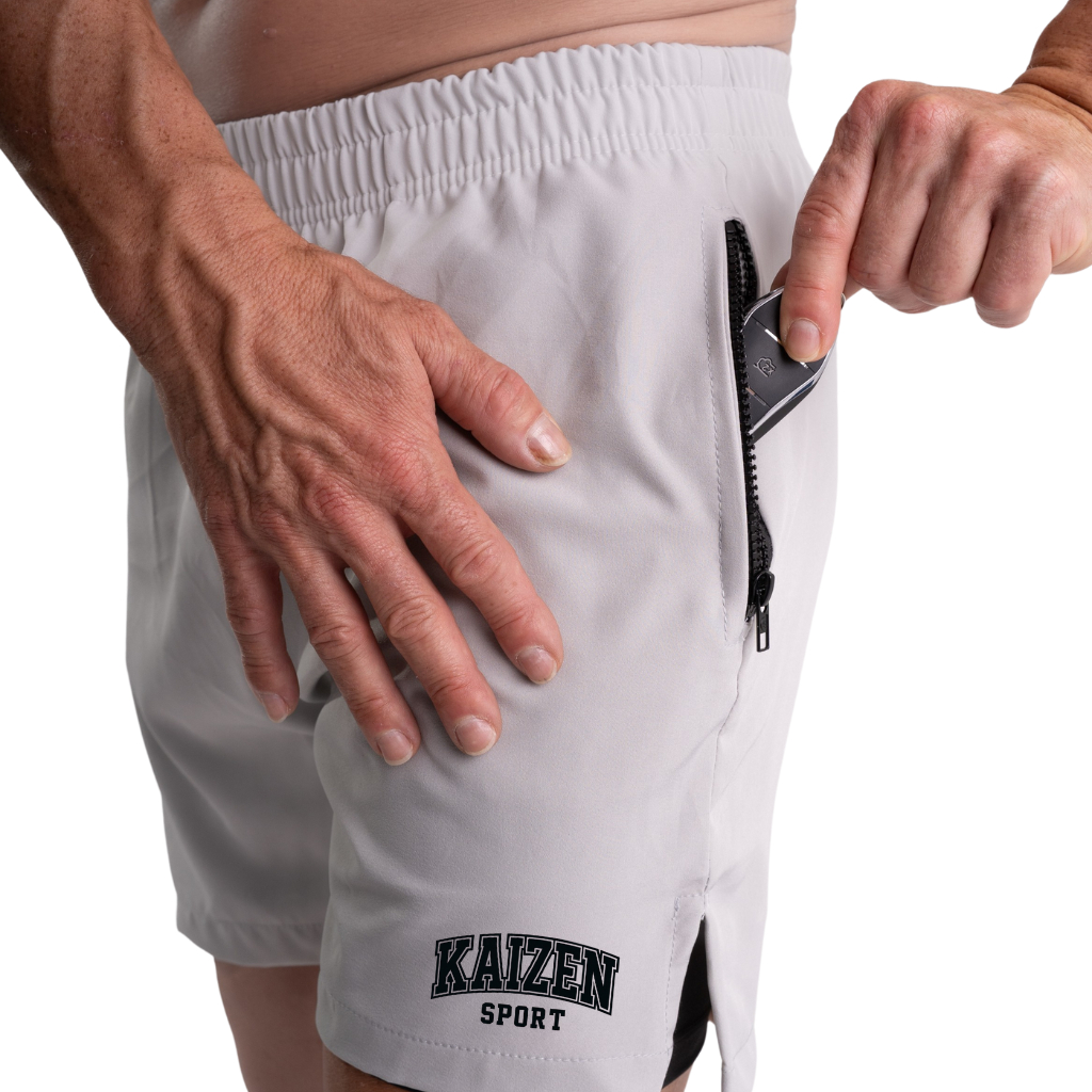 bermuda 2 em 1 tactel com elastano com ziper bolso interno para celular para academia e corrida