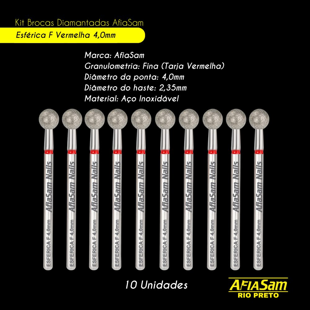 10 Broca Diamantada Esférica Vermelha 4,0mm 08F Unhas