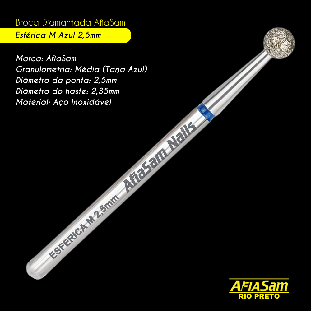 5 Broca Diamantada Esférica Azul 2,5mm Unhas Alongamento