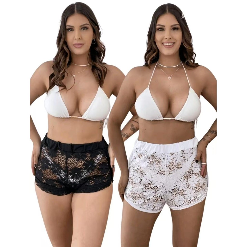Shorts Feminino Saída de Praia Summer Shorts De Renda Moda Blogueiras Boa elasticidade