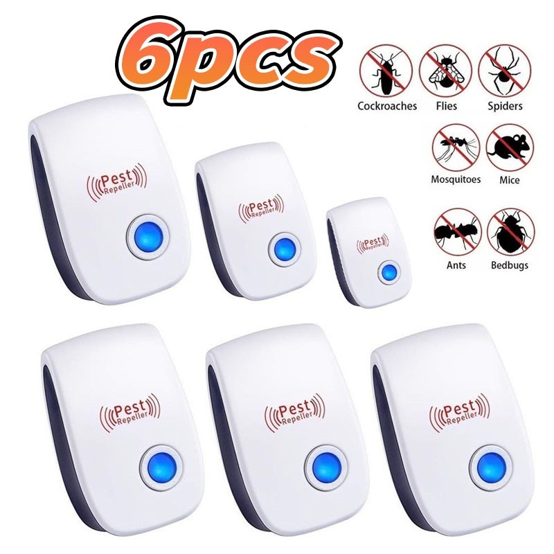 Kit 6 Repelente Eletrônico Ultrassônico De Tomada Espanta Insetos Ratos Mosquitos Pernilongo Moscas